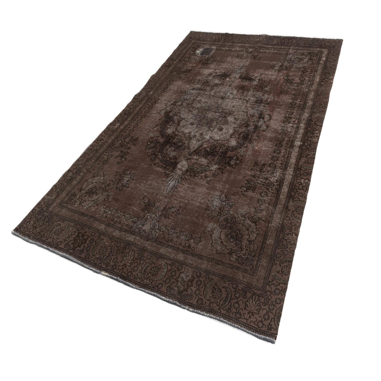 A 7x10 rectangular brown Persian wool rug with an intricate faded medallion pattern, ideal for a living room.