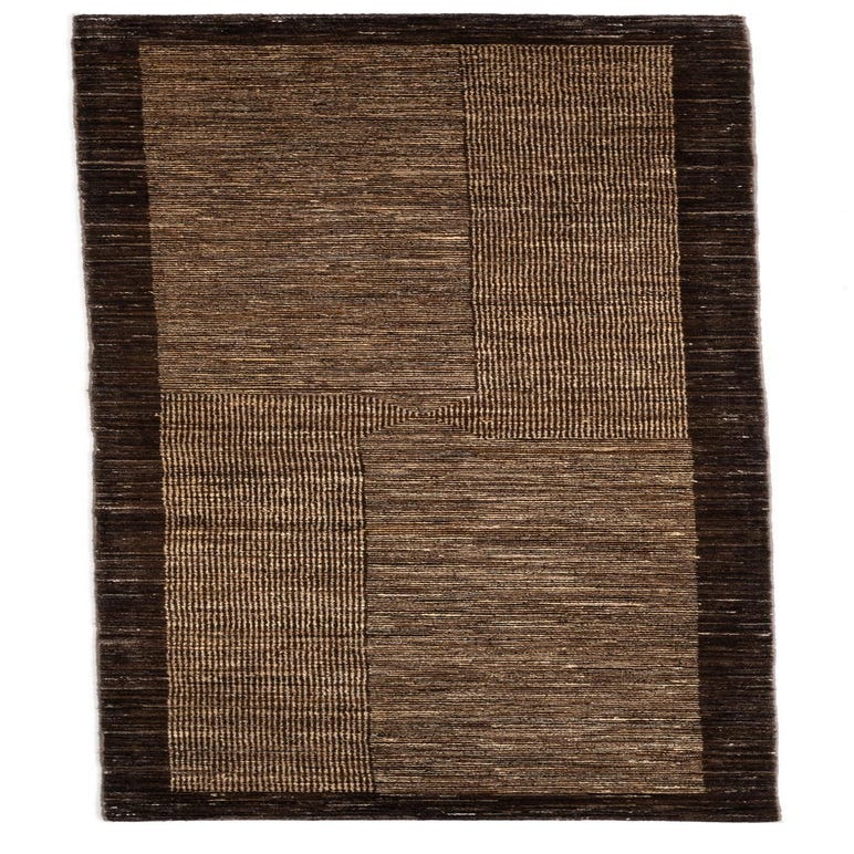 The Juma Collection 8 Ft Runner is a hand-made 100% wool rug notable for its rich texture and a pattern that exemplifies contemporary elegance. Featuring a fundamental palette predominantly in shades of brown, the design consists of several geometric blocks that create a compelling visual symmetry across the runner. The variation in the pile's cut and loop technique offers a tactile dimension that enhances the aesthetic appeal.