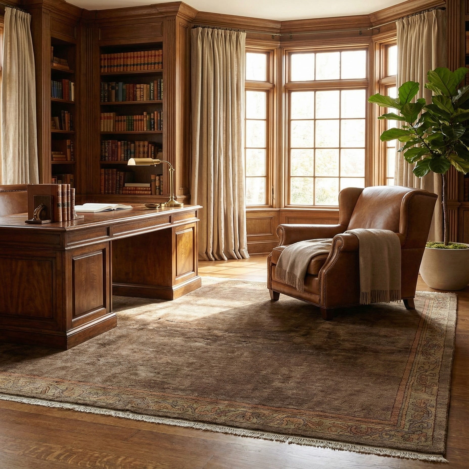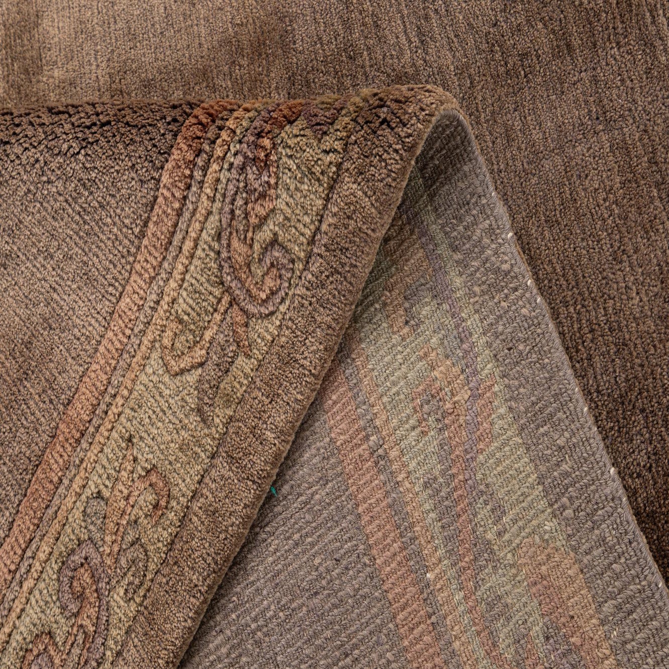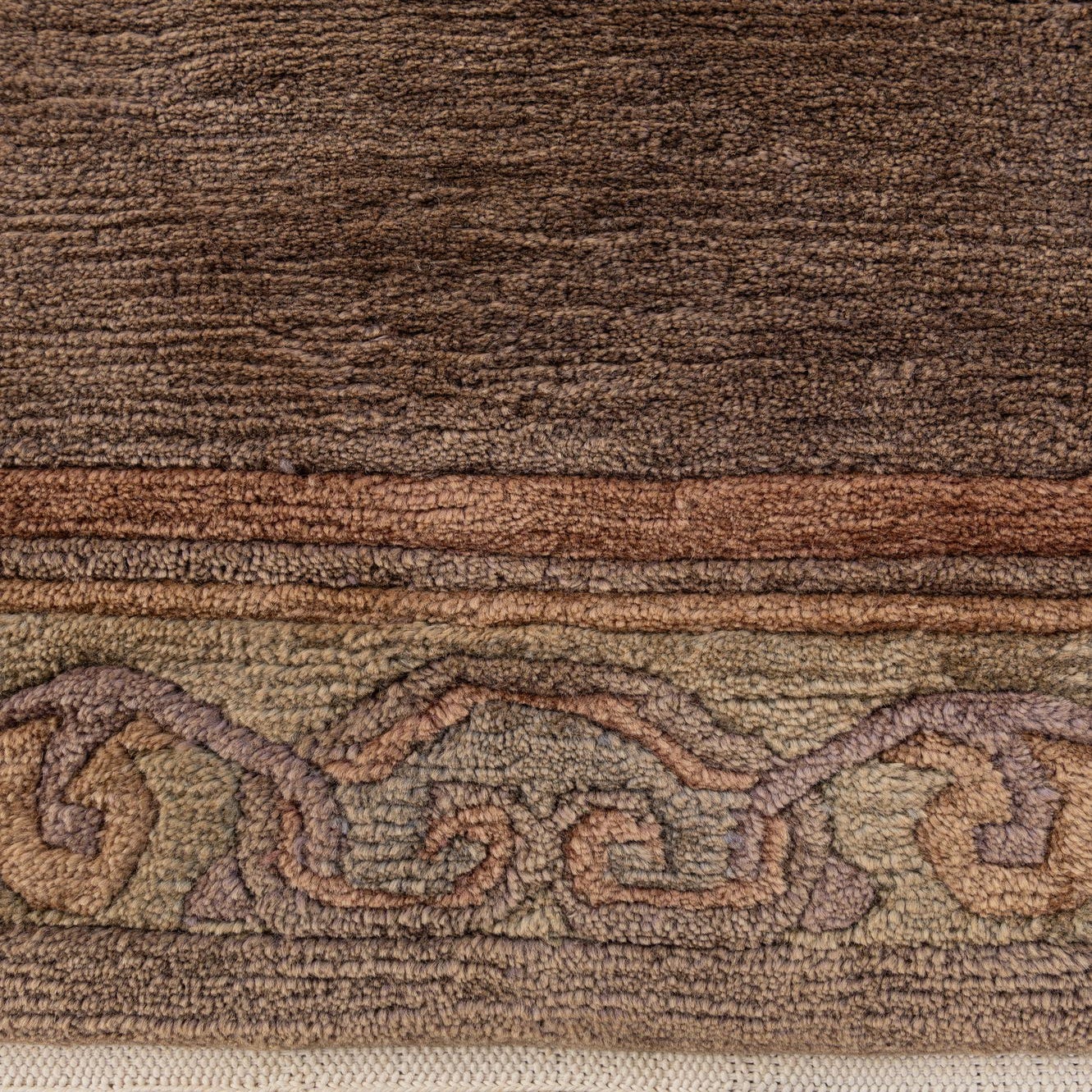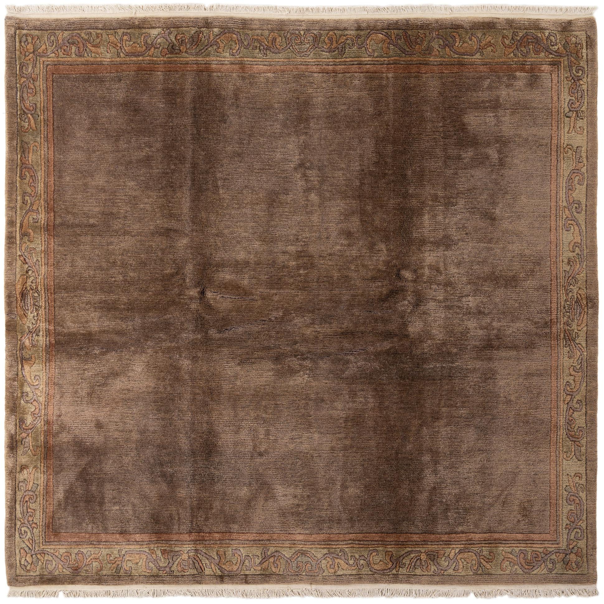 A square 8'x8' Tibet Collection wool rug in shades of brown with a subtle modern oriental border.