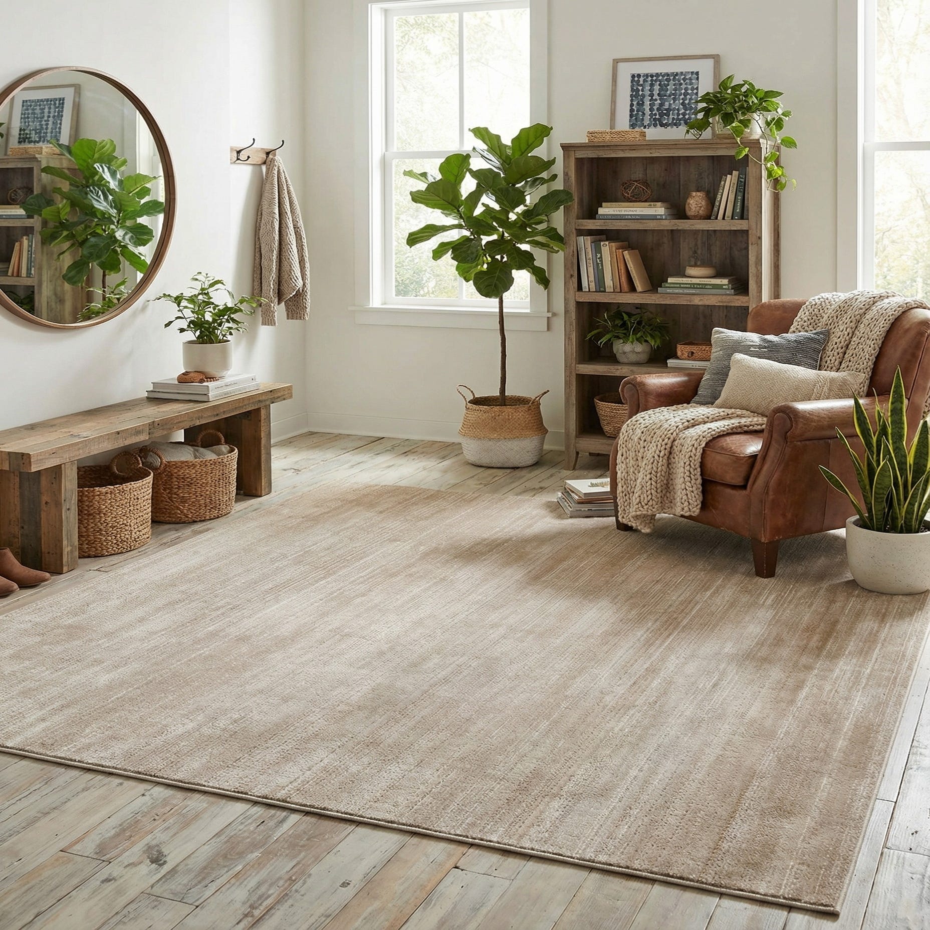 The palette of brown and ivory ensures that this piece can anchor a room without overwhelming its surroundings. The stain-resistant nature of the rug, coupled with its shed-free properties, renders it especially suitable for high-traffic areas where practicality is of equal importance to style. Its cohesive design works well in contemporary minimalist spaces, traditional settings in need of a plush grounding element, or even transitional environments where a mix of old and new is desired.