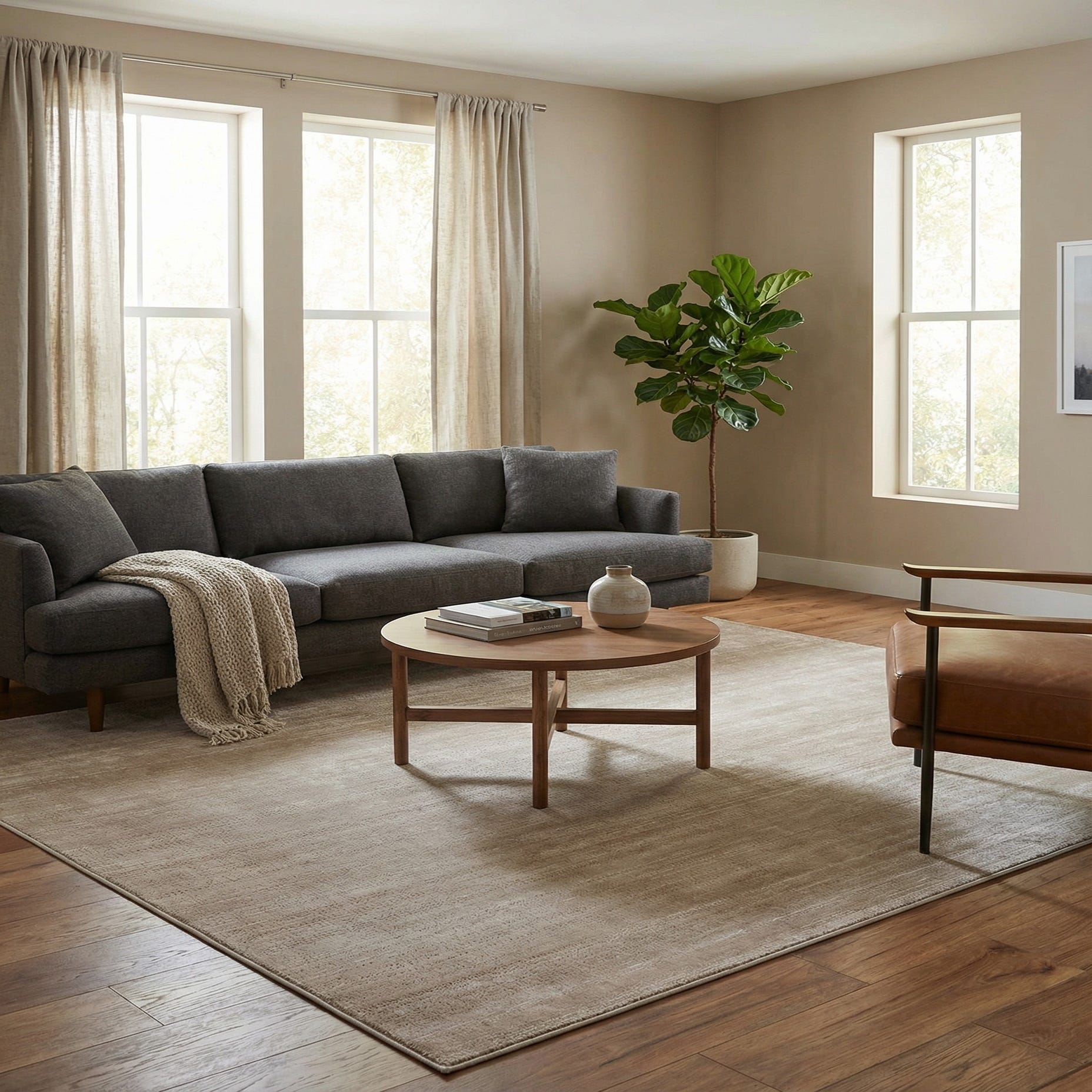 With its neutral hues and sophisticated finish, this rug can serve as a foundational piece for living rooms, open-plan apartments, or even office spaces seeking an element of warmth and comfort without compromising on elegance.