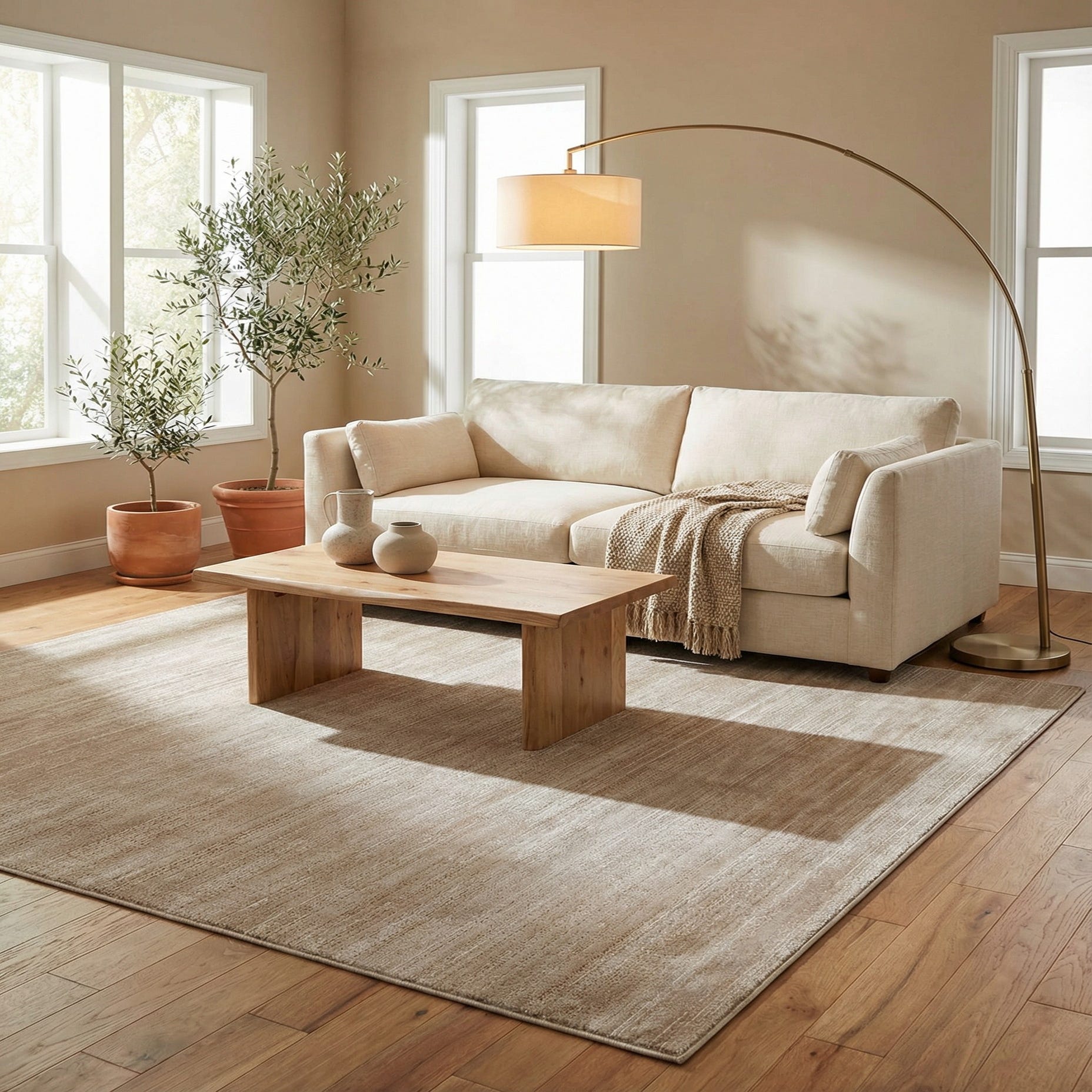 With its neutral hues and sophisticated finish, this rug can serve as a foundational piece for living rooms, open-plan apartments, or even office spaces seeking an element of warmth and comfort without compromising on elegance.
