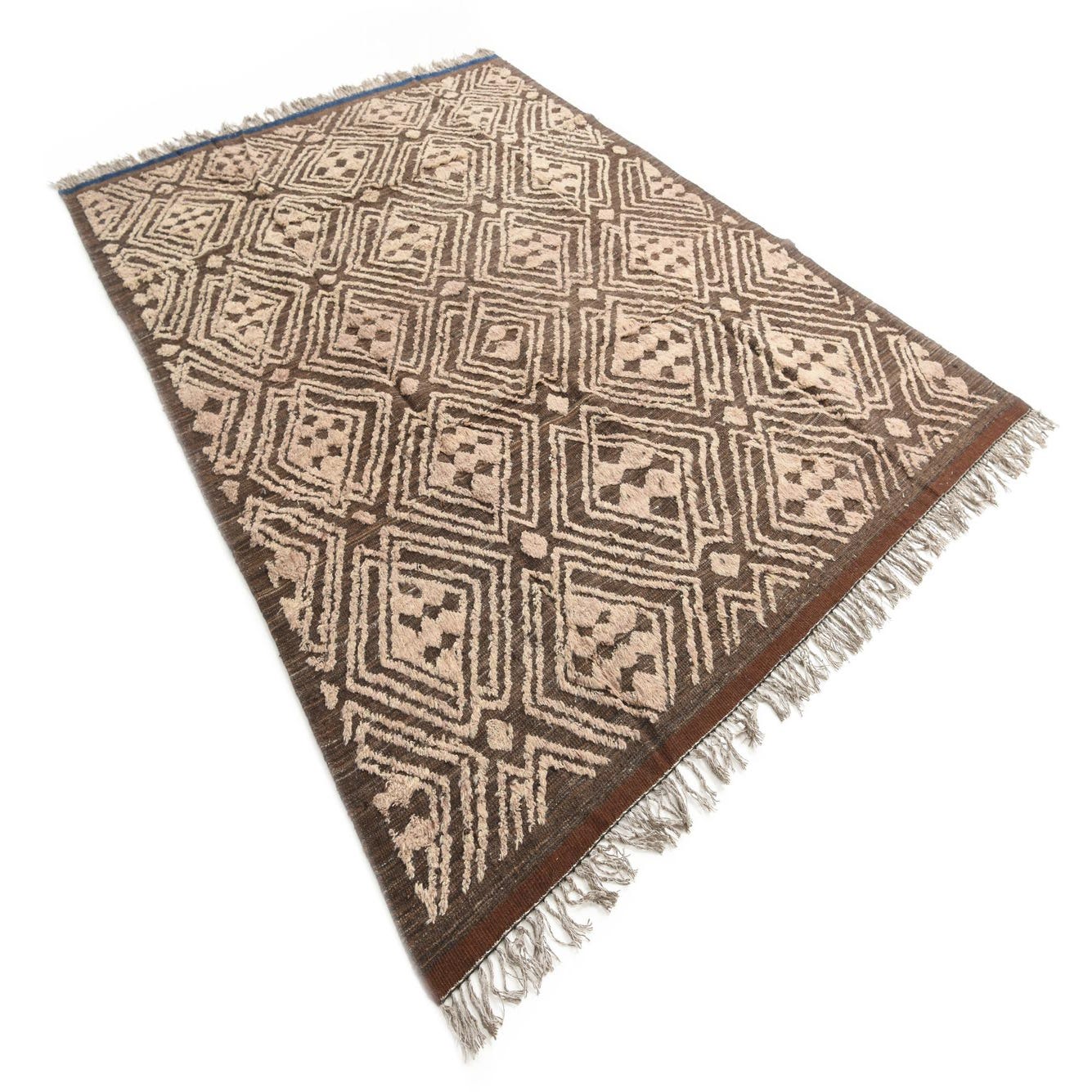 Primary color is Brown. Colors in this rug include: Brown, Beige.