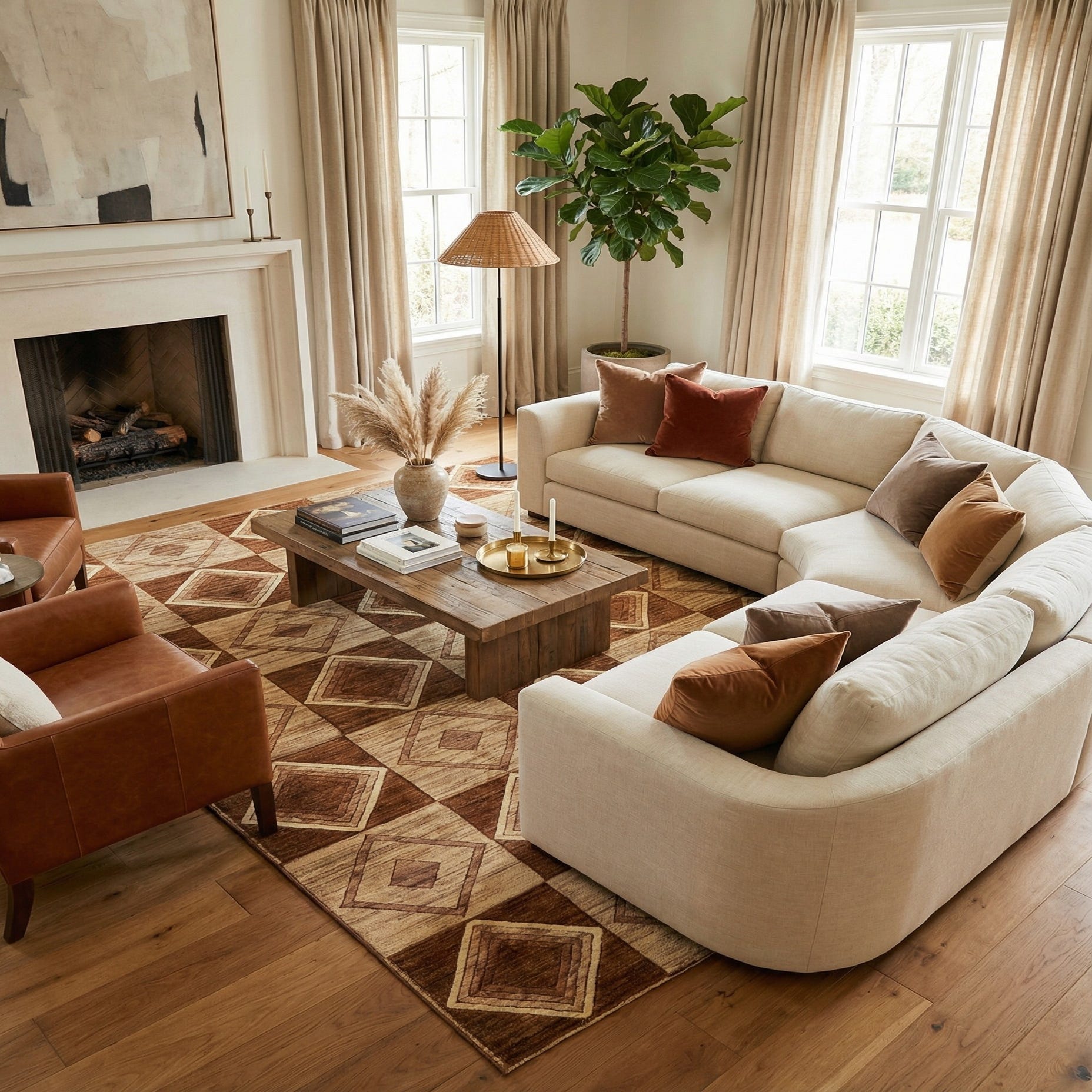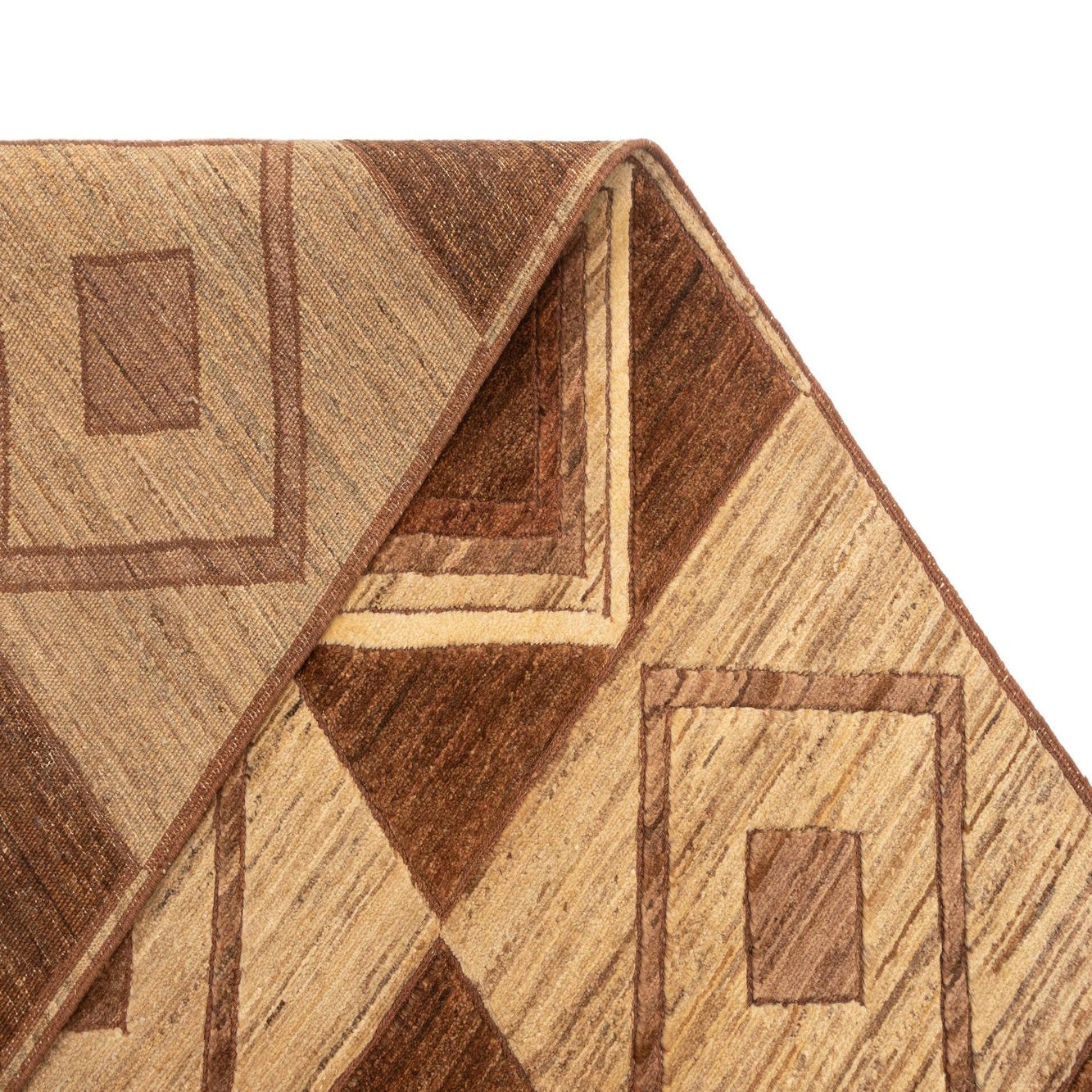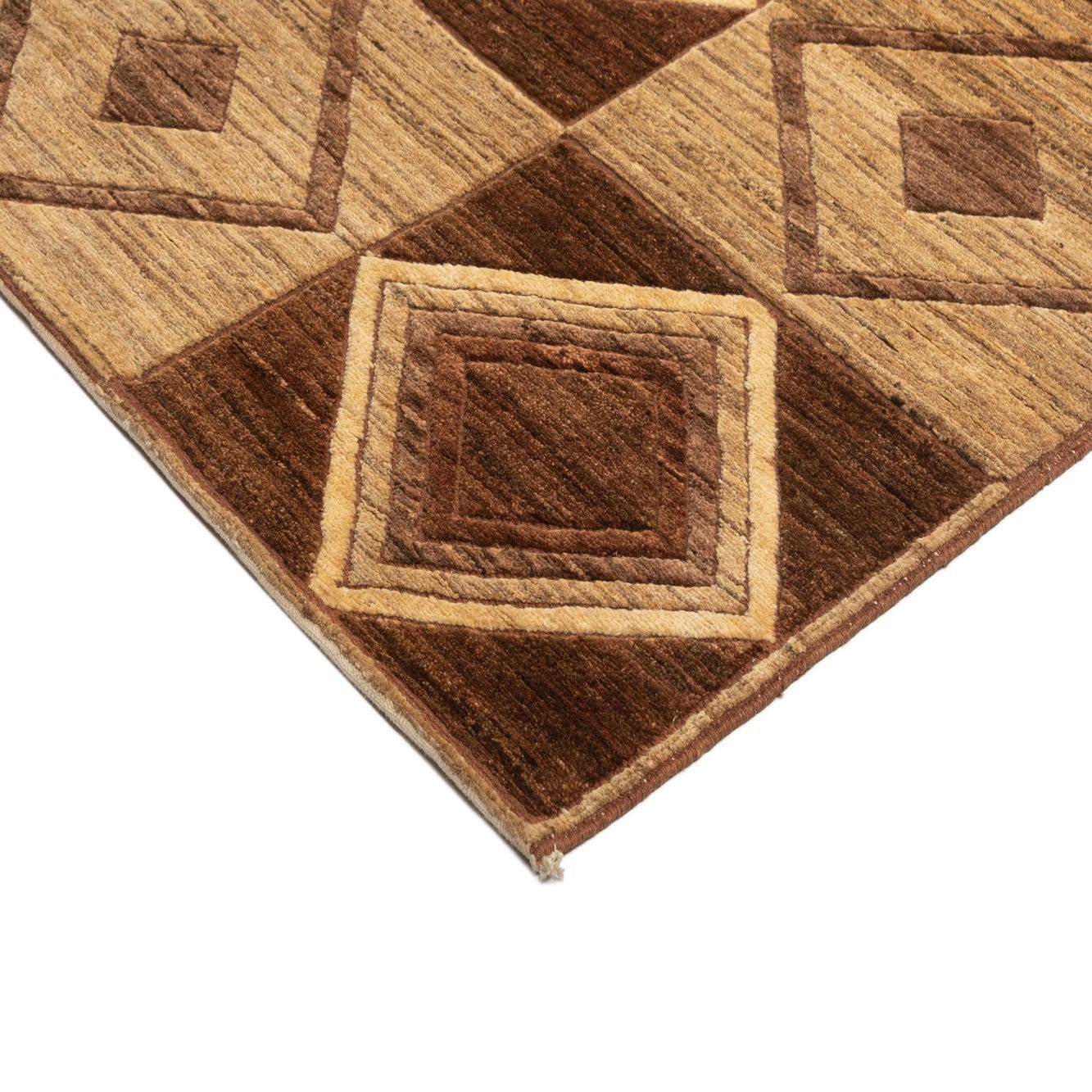 Primary color is Brown. Colors in this rug include: Brown, Beige.