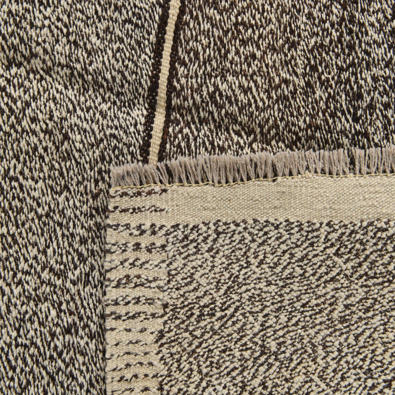 Completed with a fringe detail at the borders, this rug brings a touch of artisanal charm to any space. Its flatweave construction is durable, making it an ideal choice for high-traffic areas. This rug's muted tones and uncomplicated pattern allow it to blend seamlessly with a range of interior styles, from minimalist and modern to more traditional settings. It would serve well as a grounding element in a living room, under a dining table, or in a spacious foyer, contributing both comfort and understated elegance to the environment.