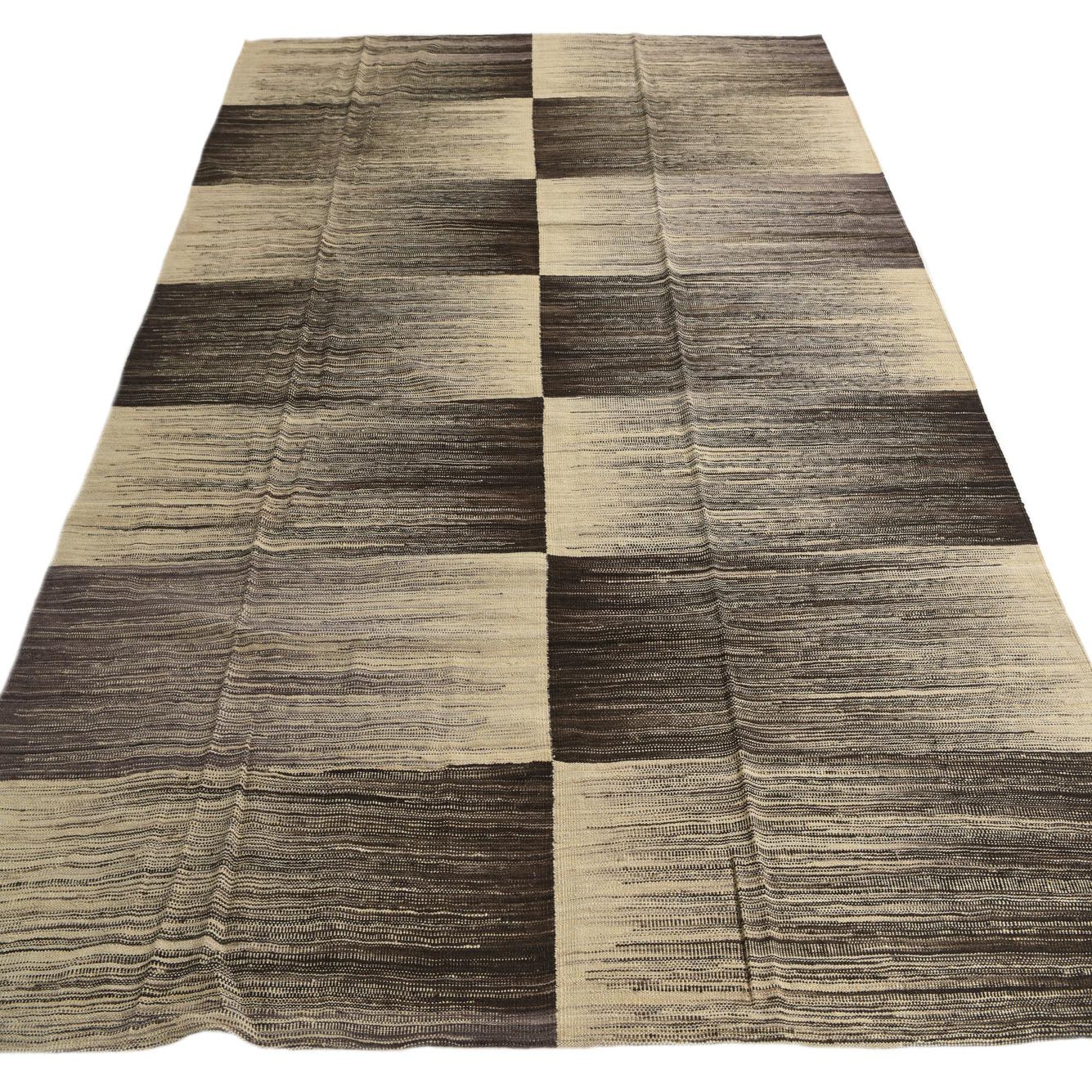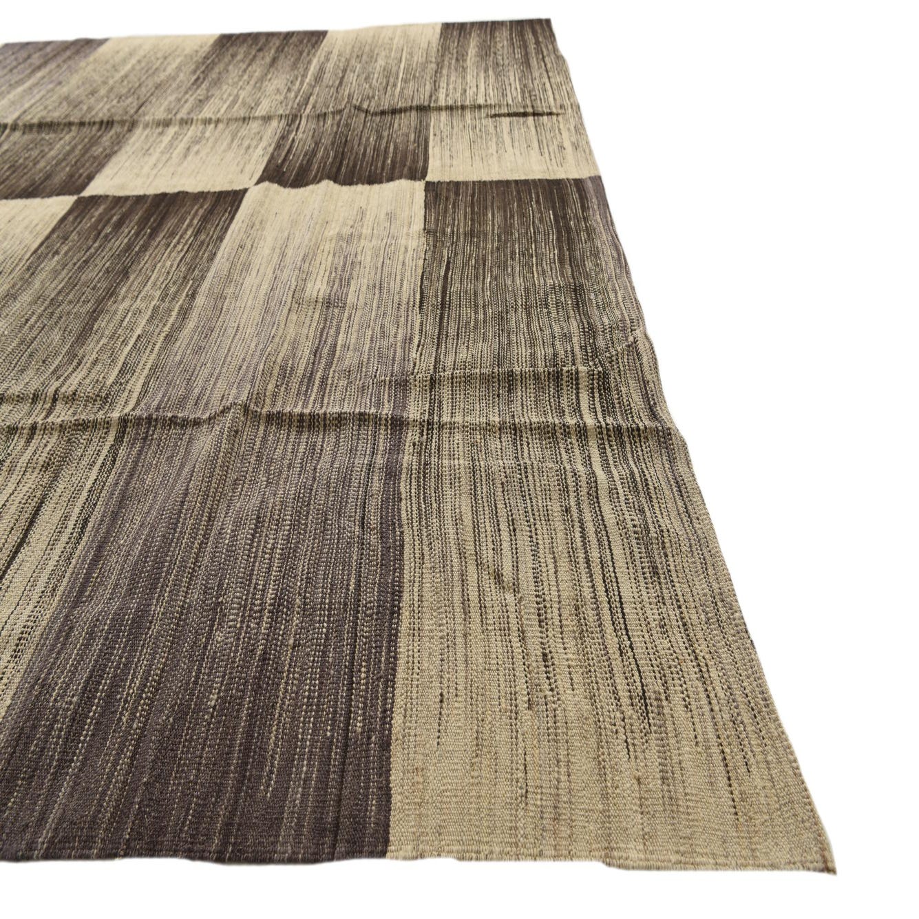 Incorporate this versatile piece into living areas, dining rooms, or home offices for a touch of organic warmth and texture. For a cohesive interior design, combine it with natural materials such as wood, leather, or metal and keep the color palette neutral to allow the understated elegance of the Kilim Modern rug to stand out.