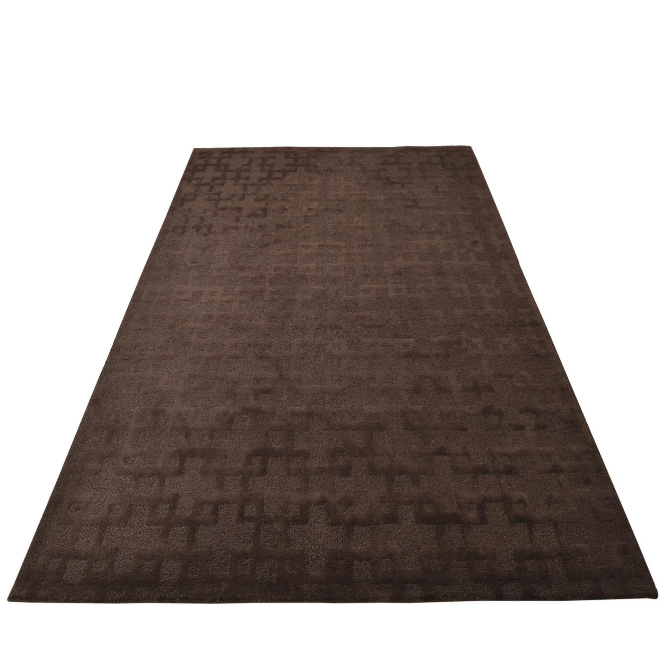 The rug's plush pile provides a soft feel, which is balanced by the crisp clarity of its contemporary design. This piece's earthy color palette of brown and light brown makes it versatile and well-suited for a range of interior design themes. It can effortlessly complement spaces with natural wood elements, adding warmth to minimalist or Scandinavian-inspired environments. Alternatively, the rug can serve as a grounding element in a more eclectic setting, where its structured pattern can balance a mix of textures and colors.