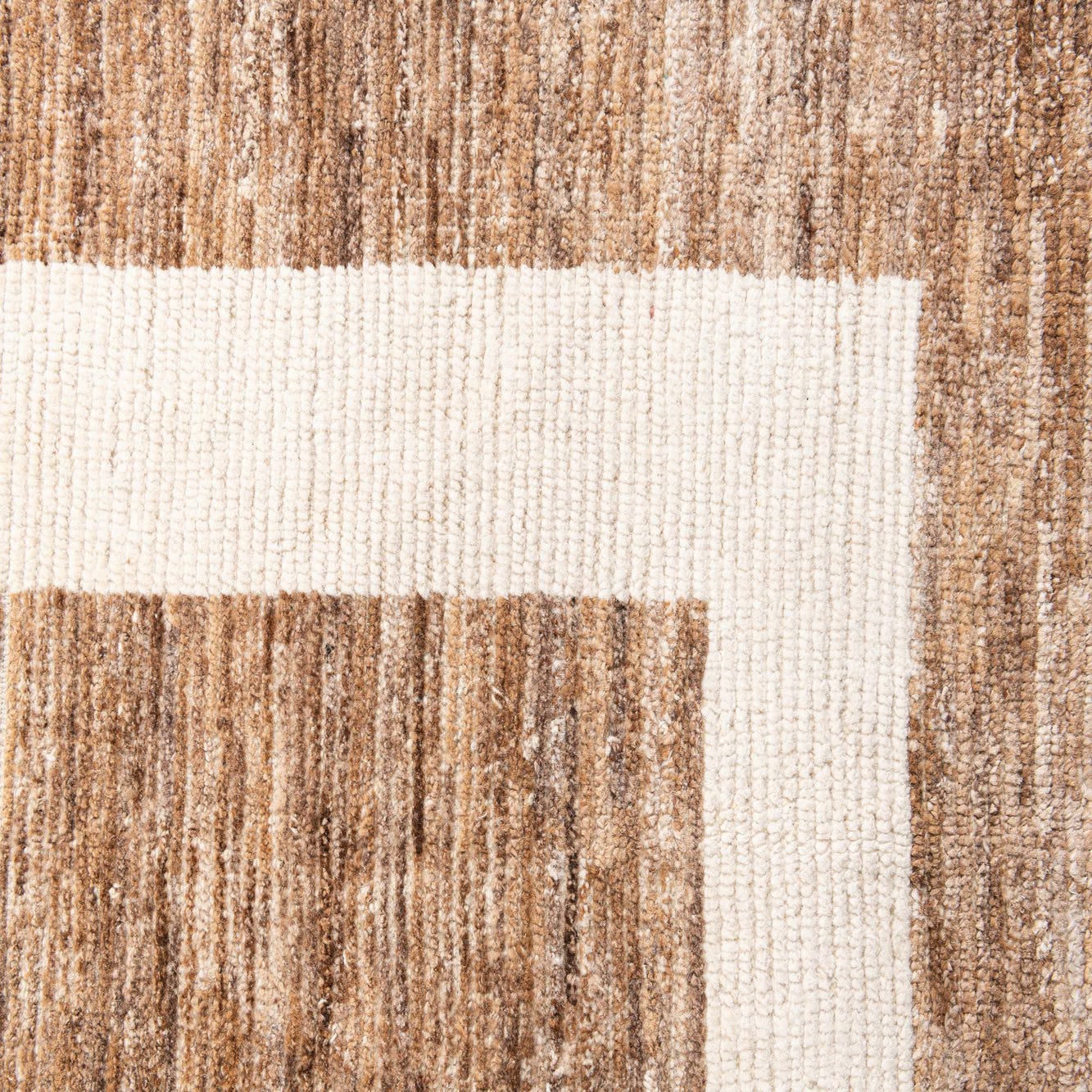Primary color is Brown. Colors in this rug include: Brown, Ivory, Light Brown.