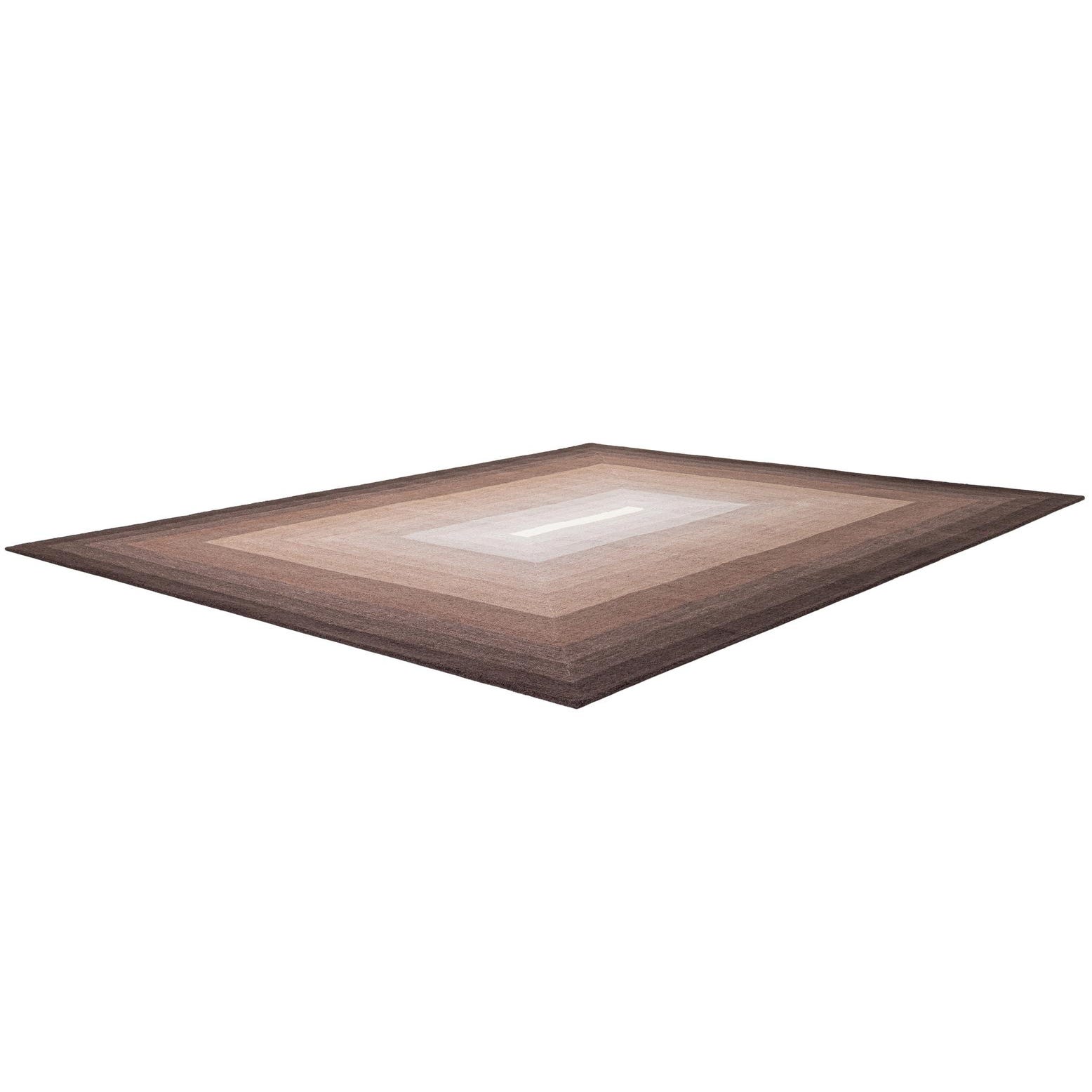 An 8x10 rectangular Ombre Wool rug featuring a modern gradient pattern of browns and tans, transitioning from dark edges to a light center.