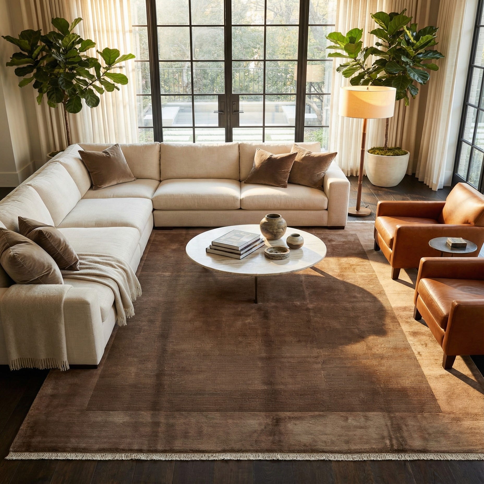 Primary color is Brown. Colors in this rug include: Brown, Light Brown.