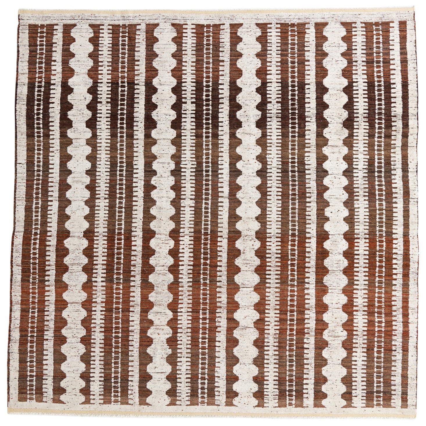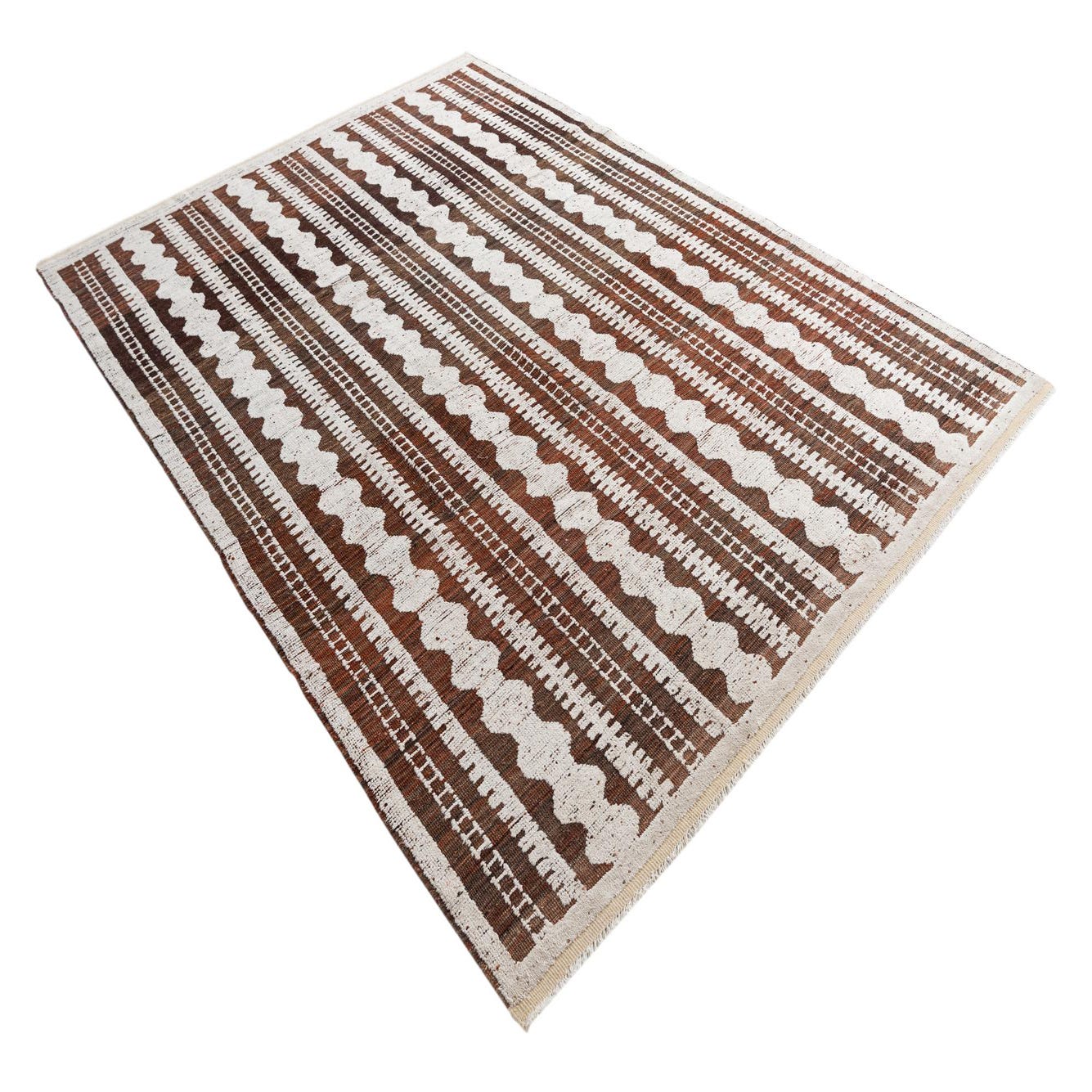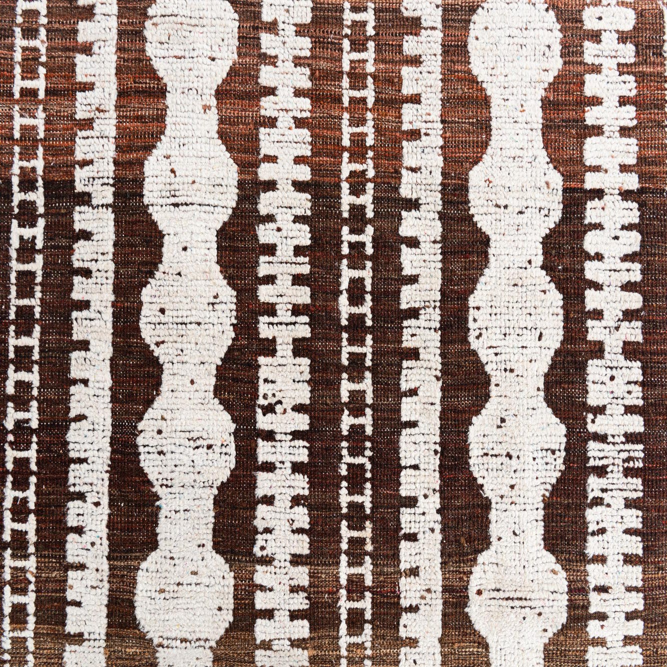 With its natural colors and straightforward design, this rug seamlessly integrates with a variety of decor styles. The rich brown tones pair well with wooden furniture and a natural palette, making it an excellent choice for mid-century modern, rustic, or Scandinavian-inspired interiors. Its substantial size and engaging pattern also make it ideal for anchoring a living room, dining area, or large entryway where it can be appreciated for both its aesthetic charm and its craftsmanship.