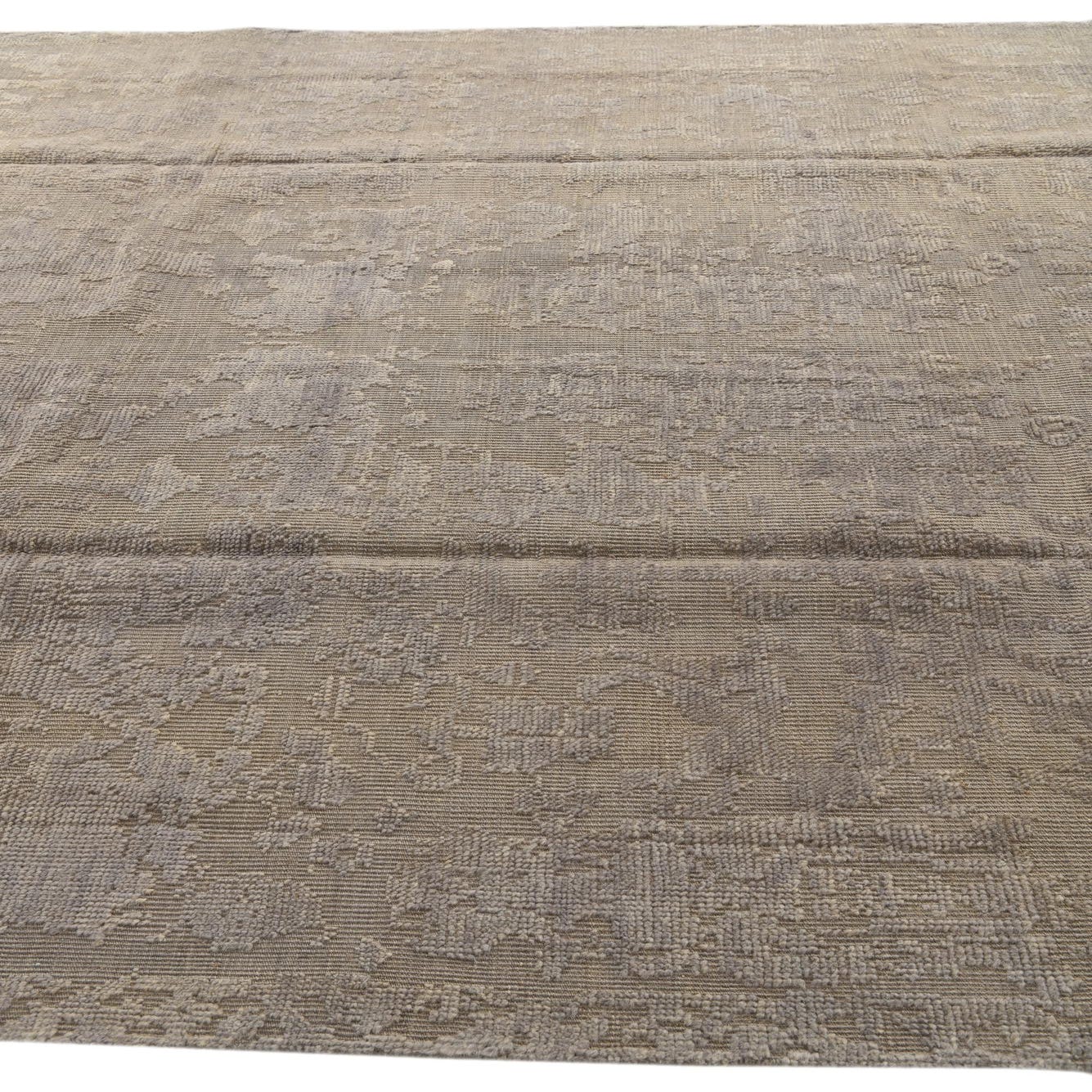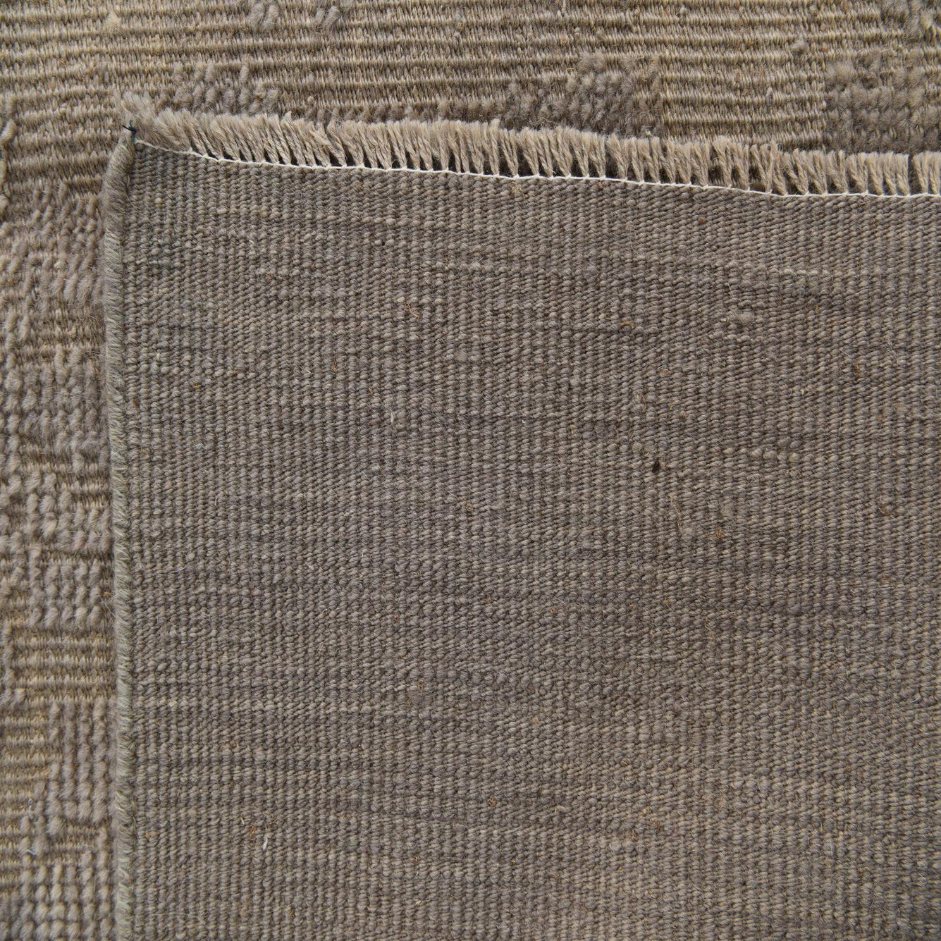 The texture of this wool rug is comfortably plush, inviting one to enjoy its tactile quality. The rug has fringe details that add to its traditional appeal. The harmonious and neutral palette allows it to seamlessly integrate into various decor themes, including modern, minimalist, bohemian, and rustic interiors. It can be an anchoring foundation in a living room, underpin a dining table, or add warmth to a bedroom. This piece's understated elegance and timeless appeal make it a versatile choice for those who appreciate both craftsmanship and design in their living spaces.