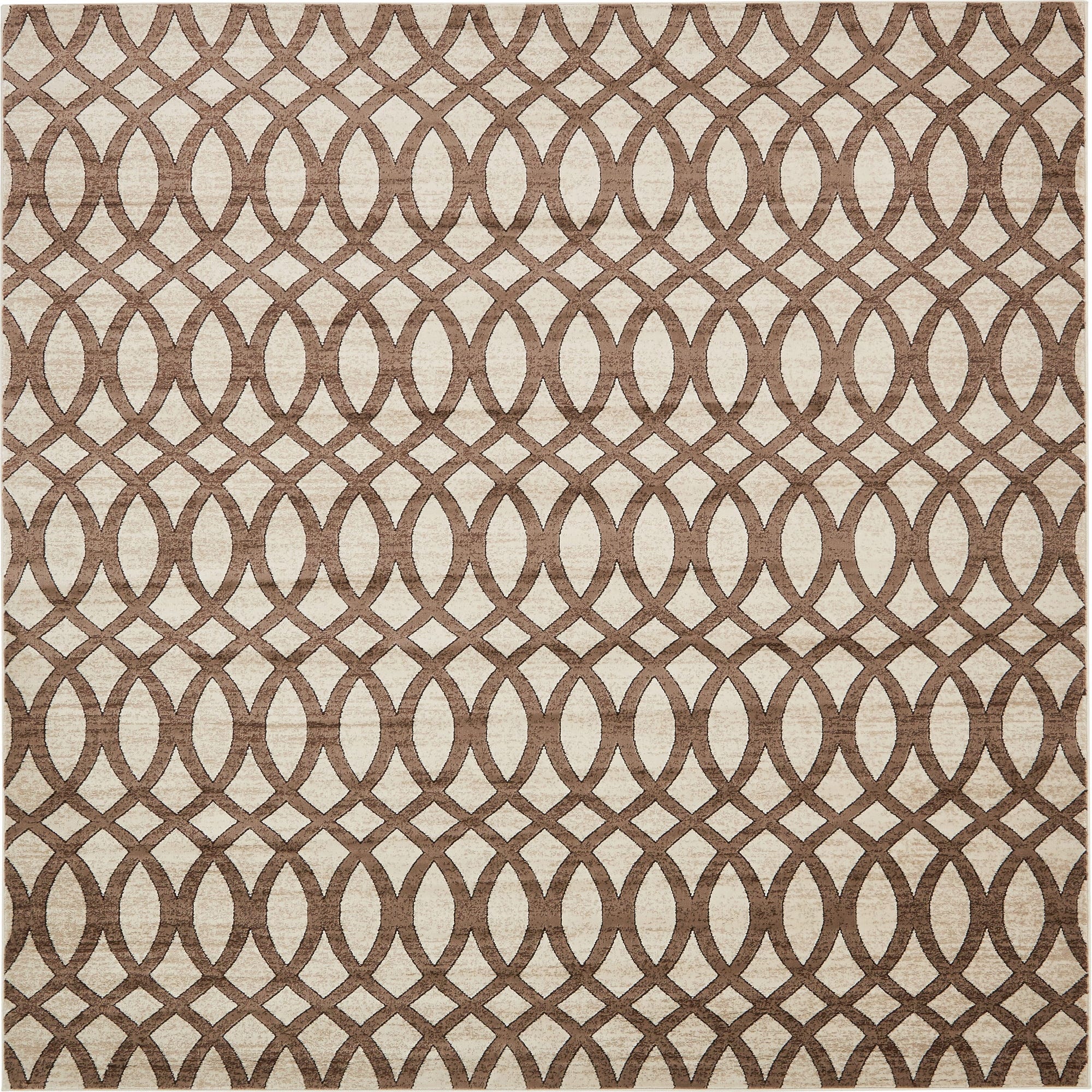 An 8x11 rectangular indoor rug featuring a repeating brown trellis pattern over a tan background, ideal for a living room.