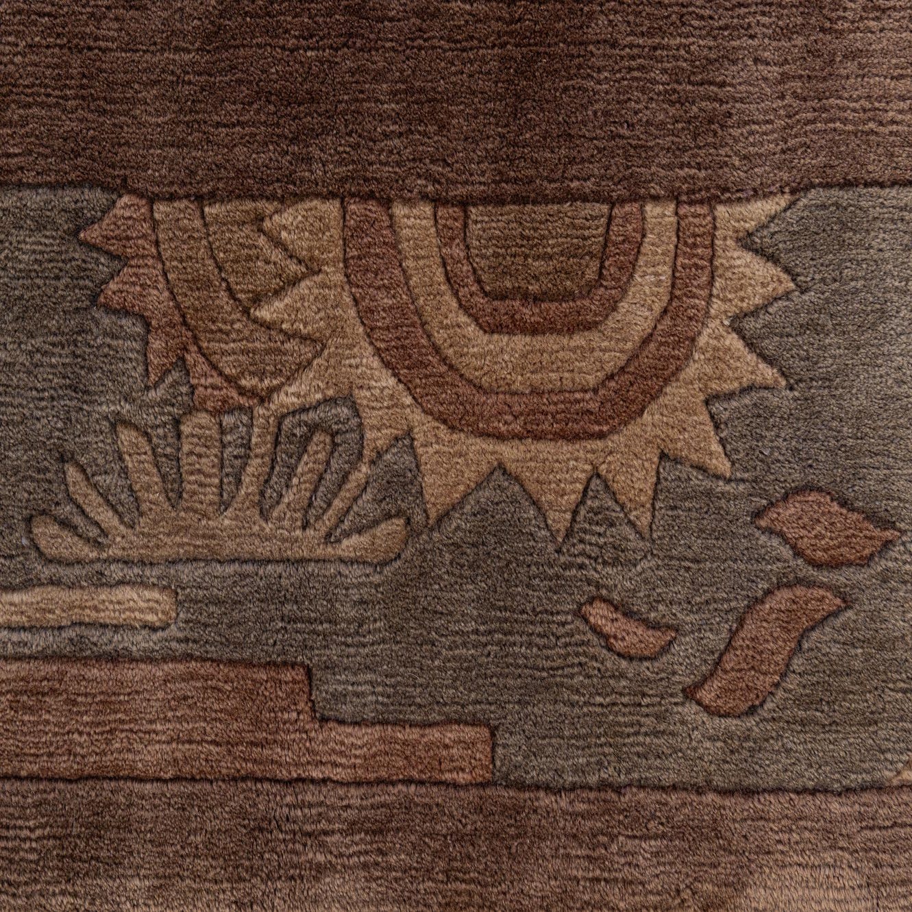 Primary color is Brown. Colors in this rug include: Brown, Ivory, Gray, Green.