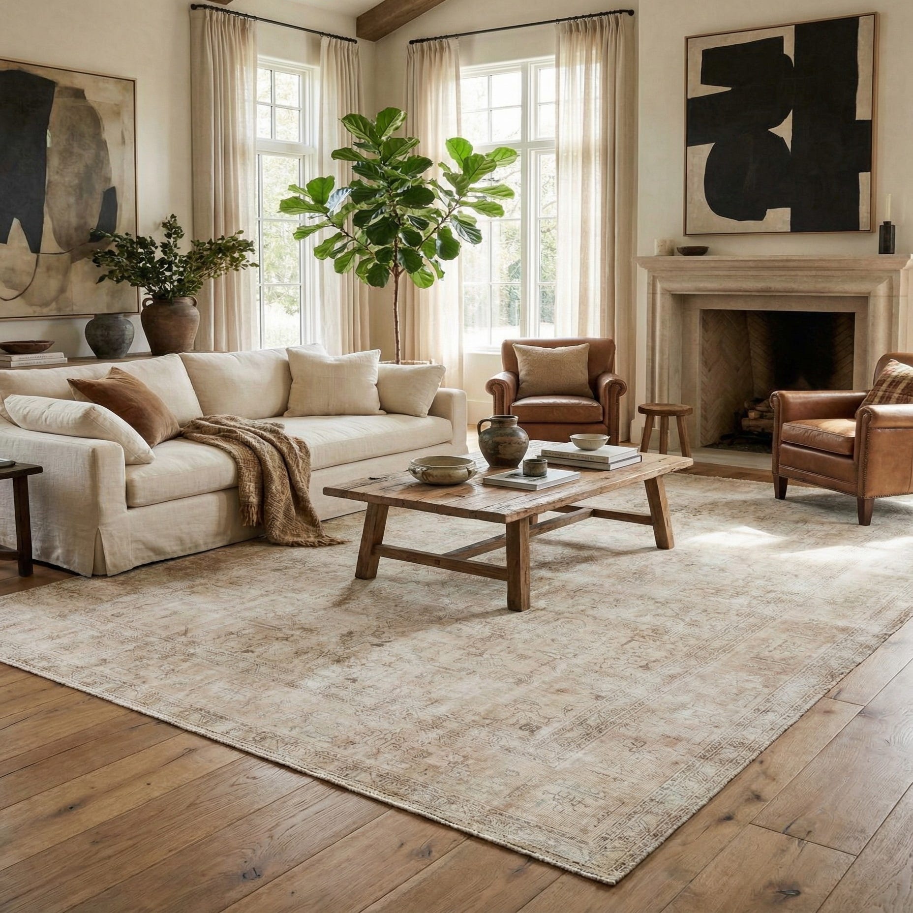 Finished with fringe detailing, this piece brings a textured, organic edge to the sophisticated design. The balance of the neutral tones ensures that this rug could seamlessly integrate into a variety of interior scenarios. It would serve as a refined backdrop in a classic living room, add warmth to a study with rich wooden furniture, or anchor a minimalist space by adding a layer of history and texture. The Ultra Vintage rug is poised to enhance both contemporary and traditional homes that appreciate the subtlety of antique-inspired aesthetics.