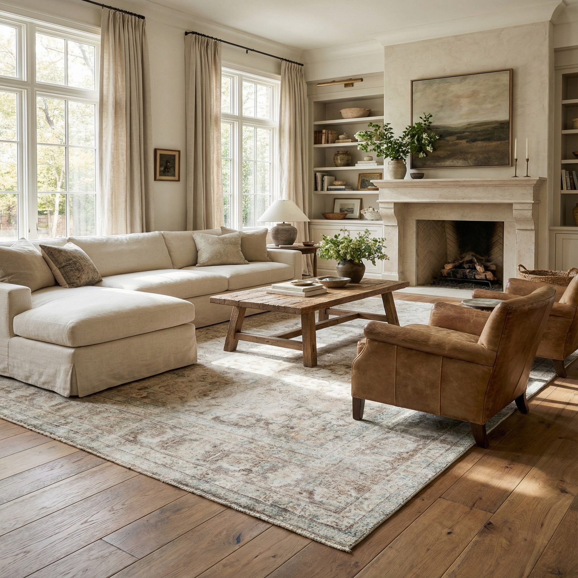 An 8x11 rectangular Ultra Vintage rug by Rugs.com, featuring a faded Persian medallion pattern in brown and tan tones, suitable for a living room.