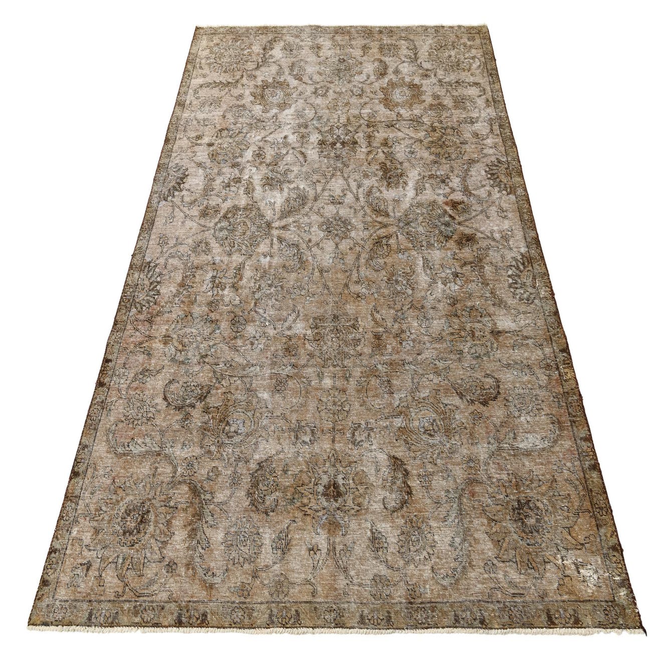 This Persian Ultra Vintage rug is an antique Persian Rug that has been washed, over-dyed, and then shaved down to a low pile. Look at the detail pictures to fully appreciate the uniqueness of this piece.