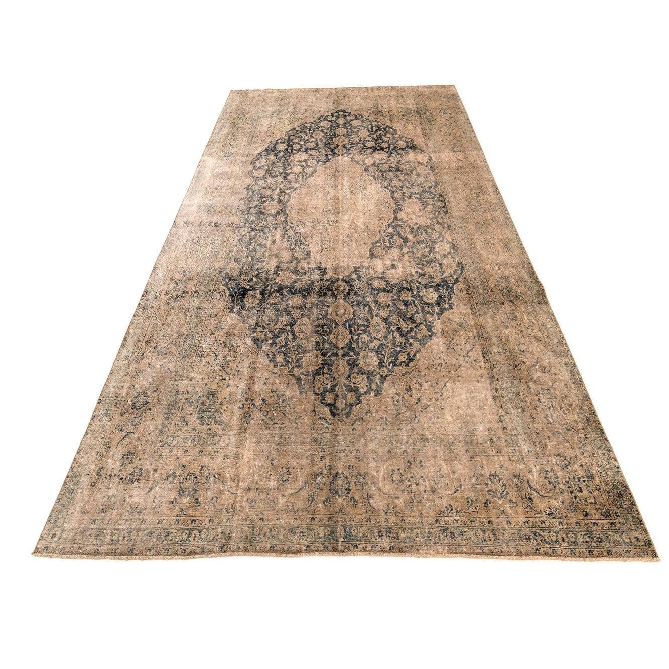 A rectangular 8x11 Vintage Royal Persian rug in shades of brown and tan, featuring an intricate floral medallion pattern.