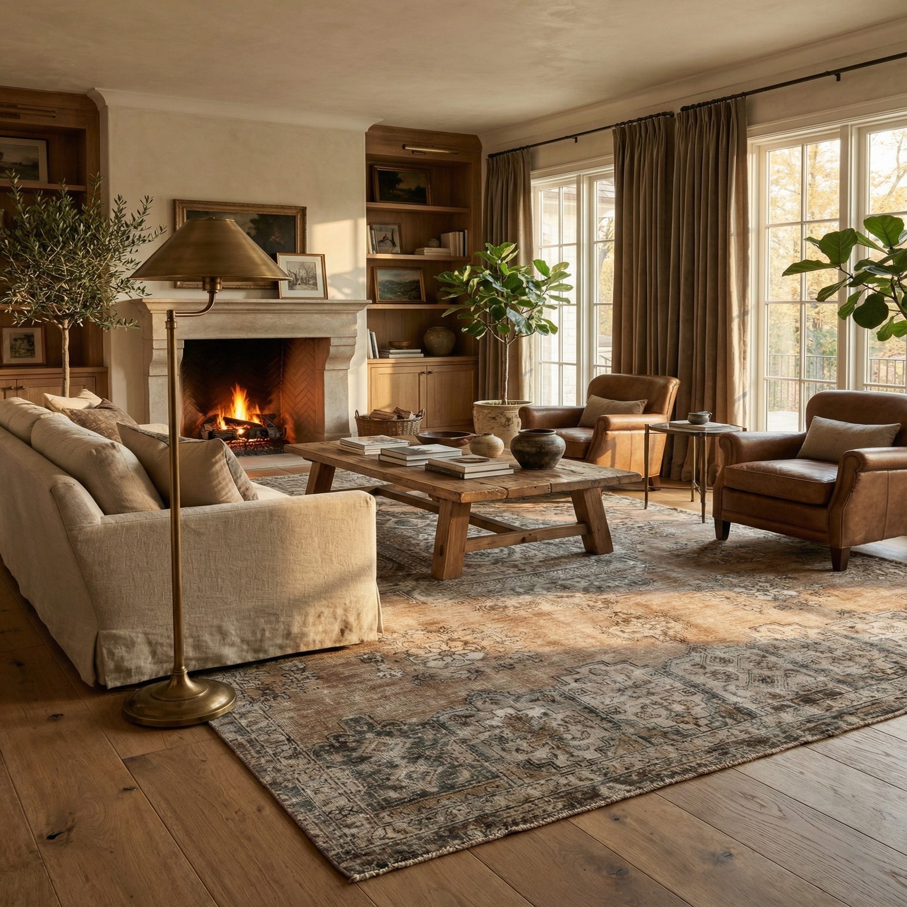 The rug's fringe adds a classic finish, enhancing its overall aesthetic. Its plushness and rich color palette make it a suitable addition to interiors that aim for a sophisticated yet cozy ambiance, such as traditional living rooms, libraries, or formal dining areas. It can also serve as a compelling contrast in more modern spaces that seek to incorporate elements of classic charm.