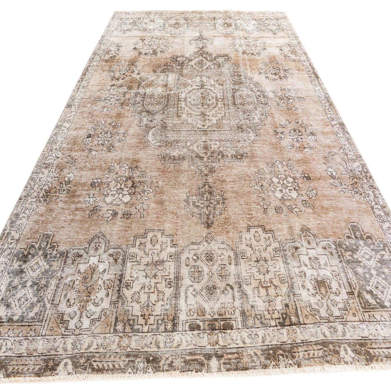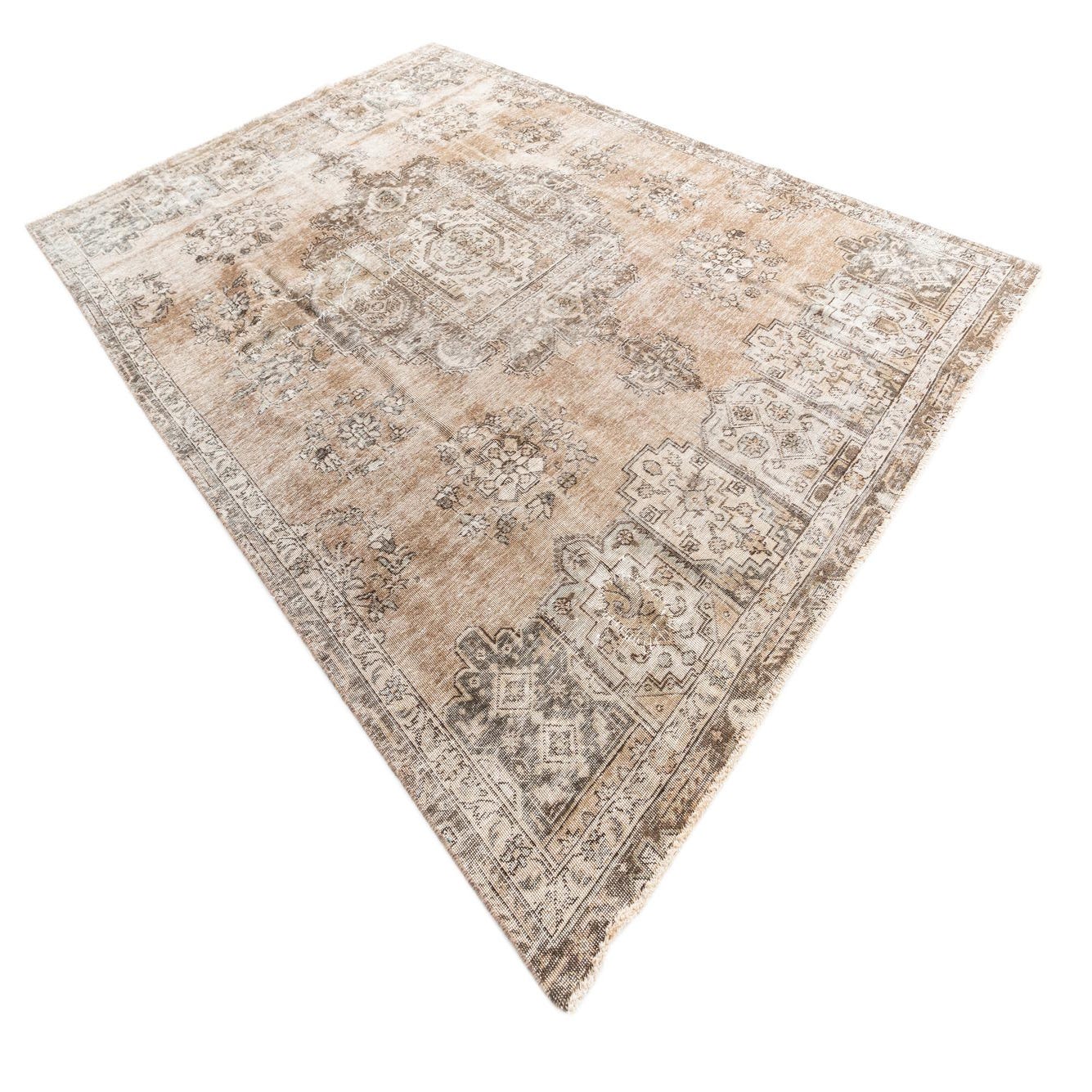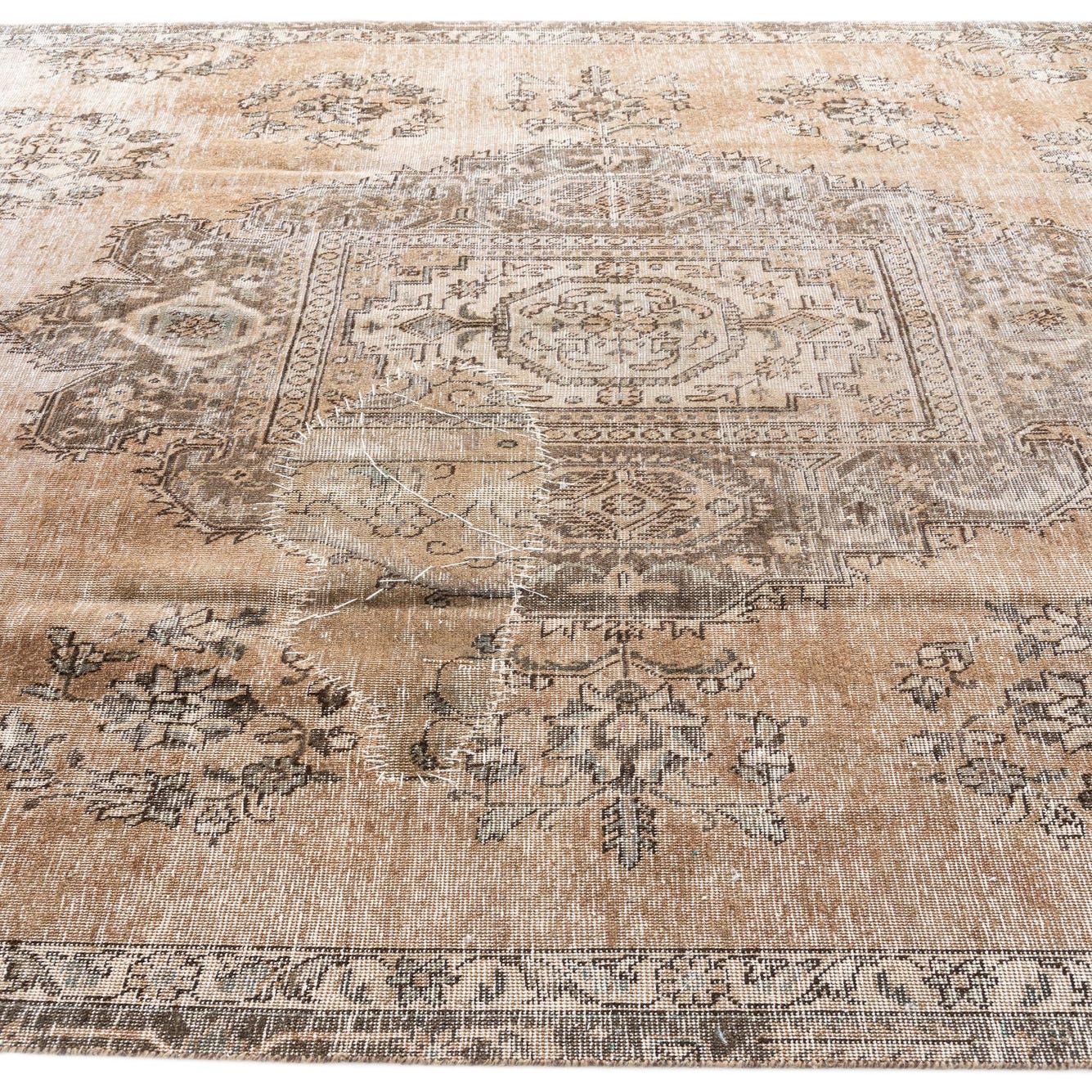 A large 8x12 rectangular Ultra Vintage rug featuring a faded brown and tan Persian medallion pattern, handmade from wool.