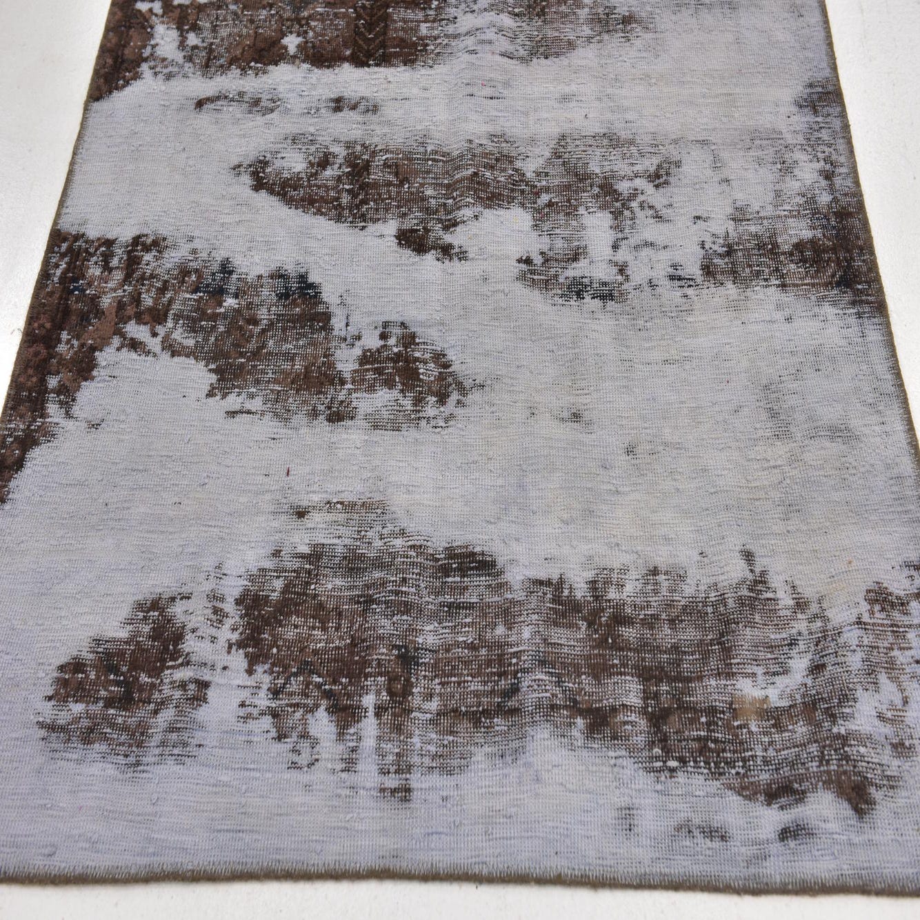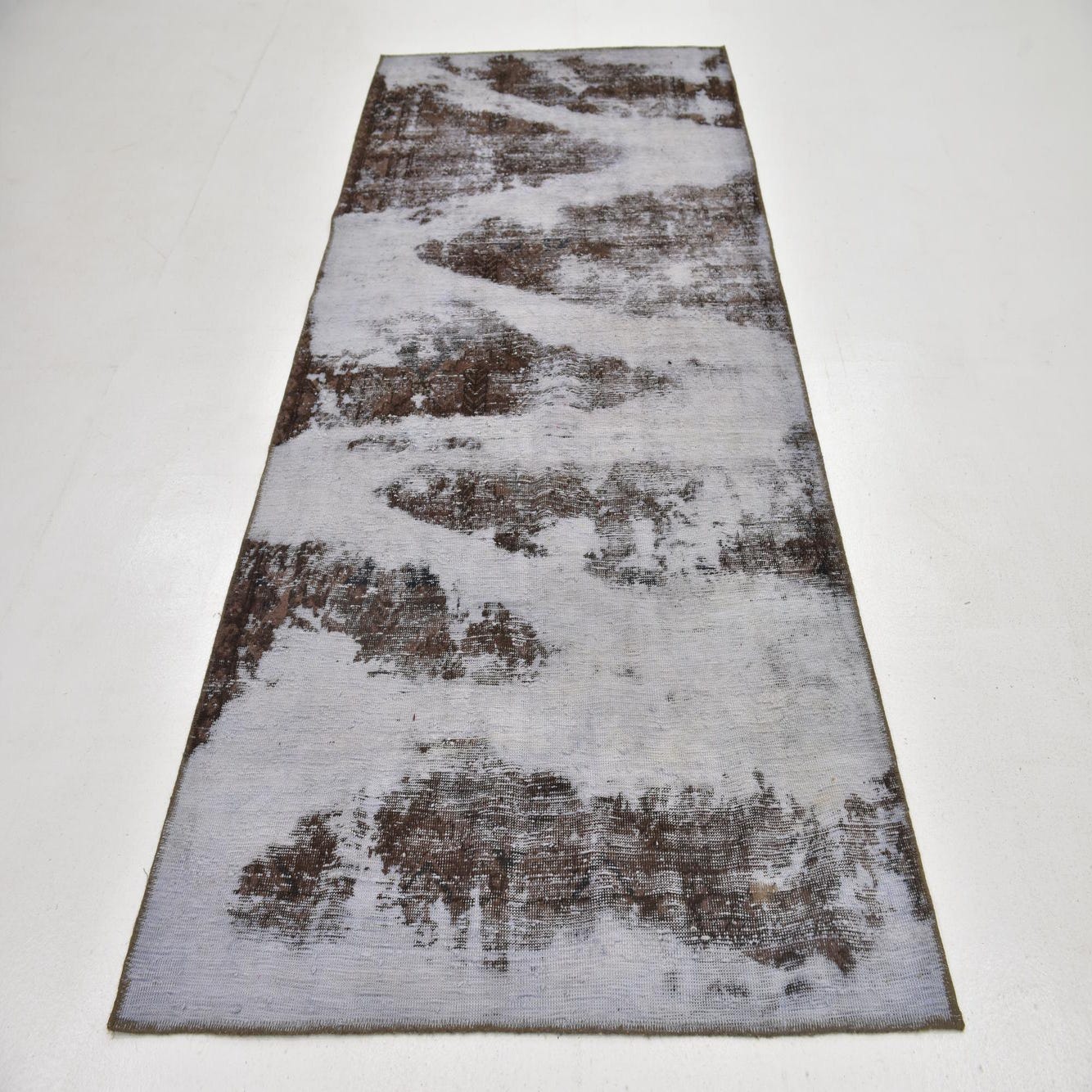 The Ultra Vintage collection presents a refined 9 ft runner, hand-knotted from 100% wool, offering both durability and timeless elegance. This piece features a dynamic composition of distressed patterns, creating an artistic blend of traditional motifs with a modern, abstract twist. The color palette is comprised of a base of warm brown, naturally complemented by shades of beige, gray, light brown, and ivory, lending itself to a versatile range of interior styles.