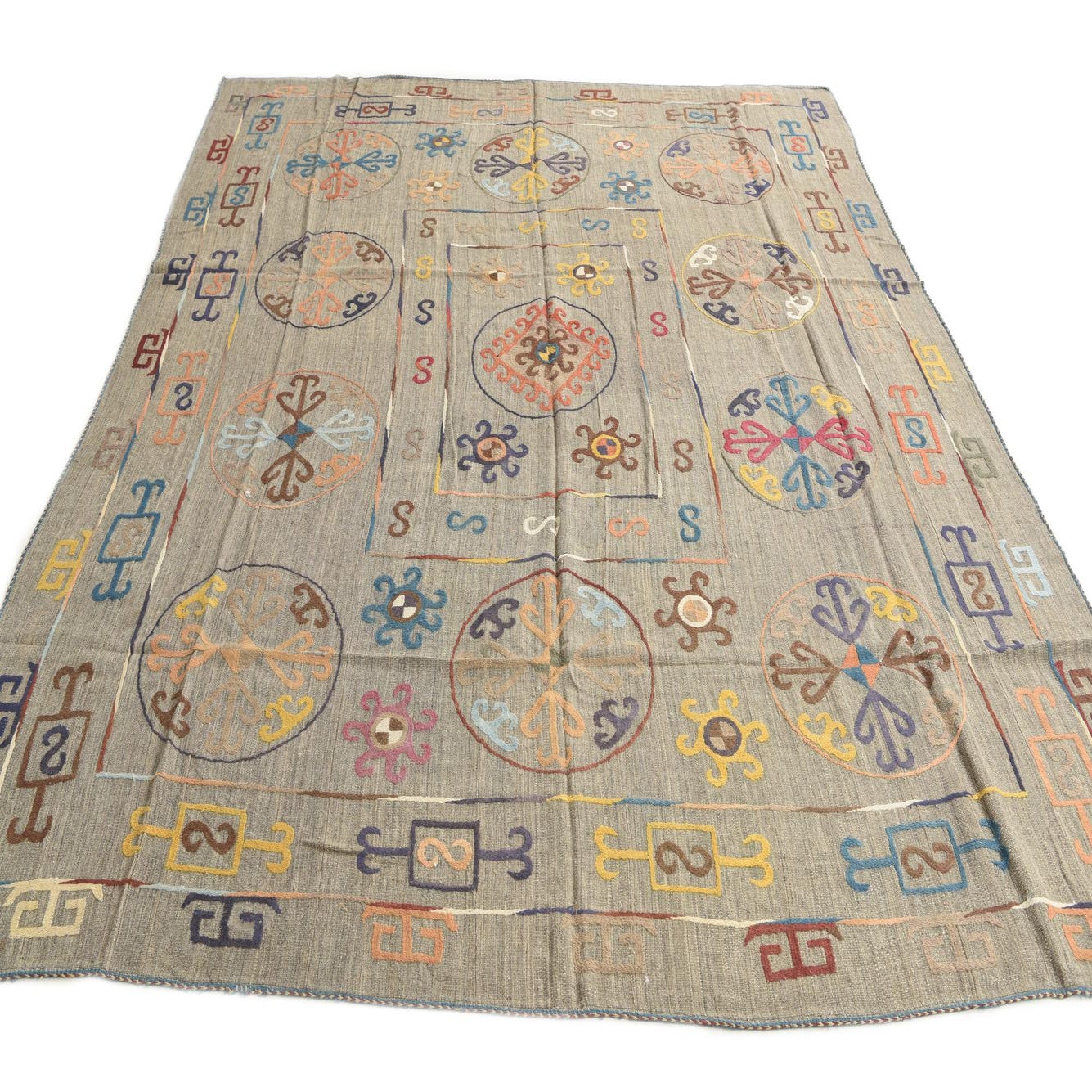 8' 7 x 9' 6 Hand Woven Kilim Suzani Wool Square Rug
