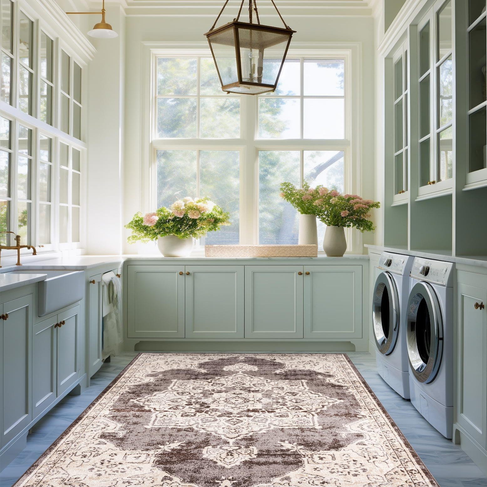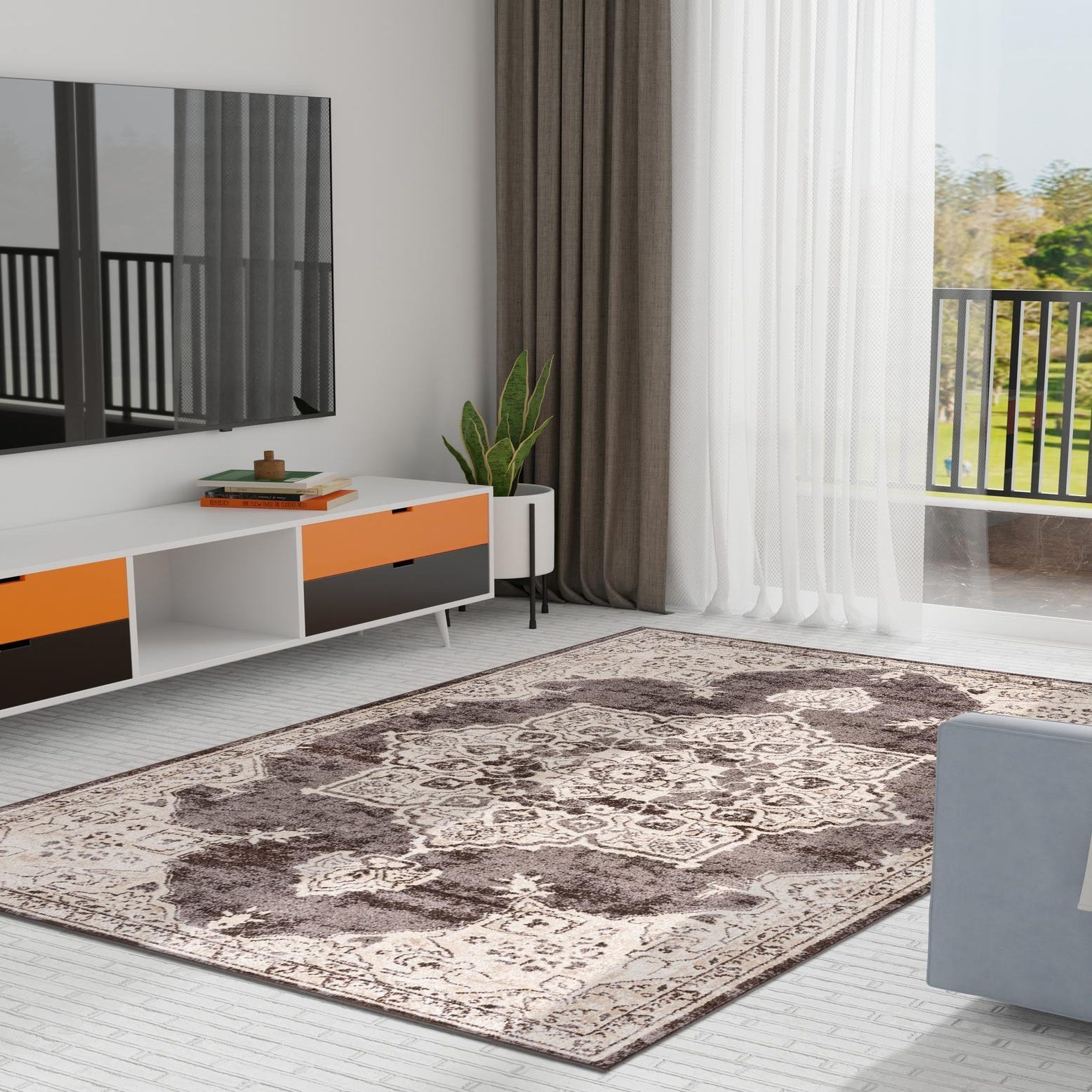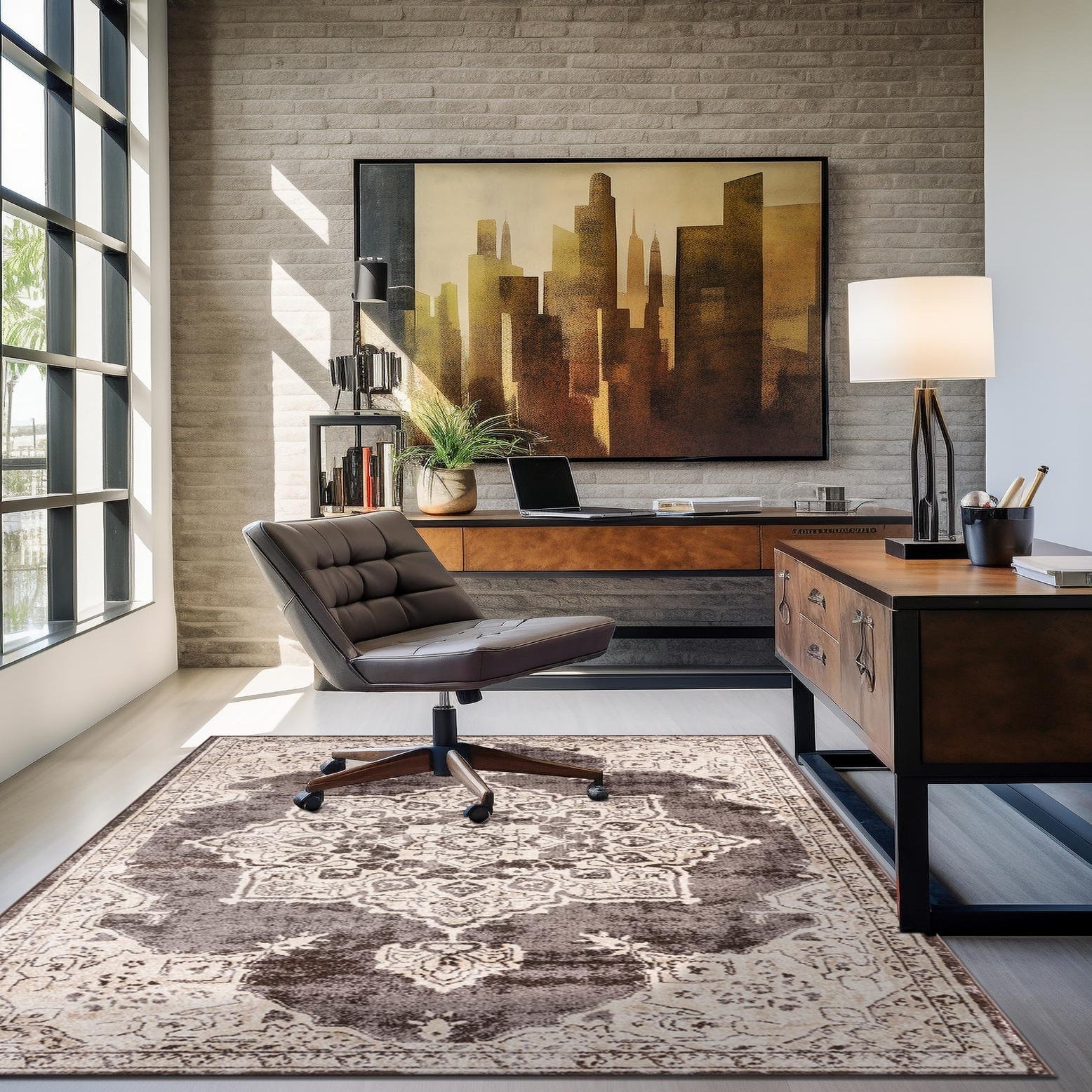Primary color is Brown. Colors in this rug include: Brown, Beige, Ivory, Light Brown.