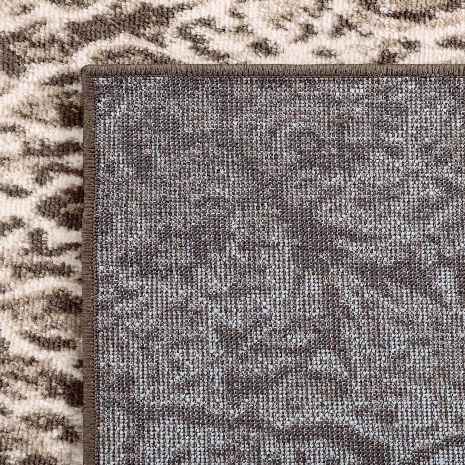 Primary color is Brown. Colors in this rug include: Brown, Ivory, Light Brown.