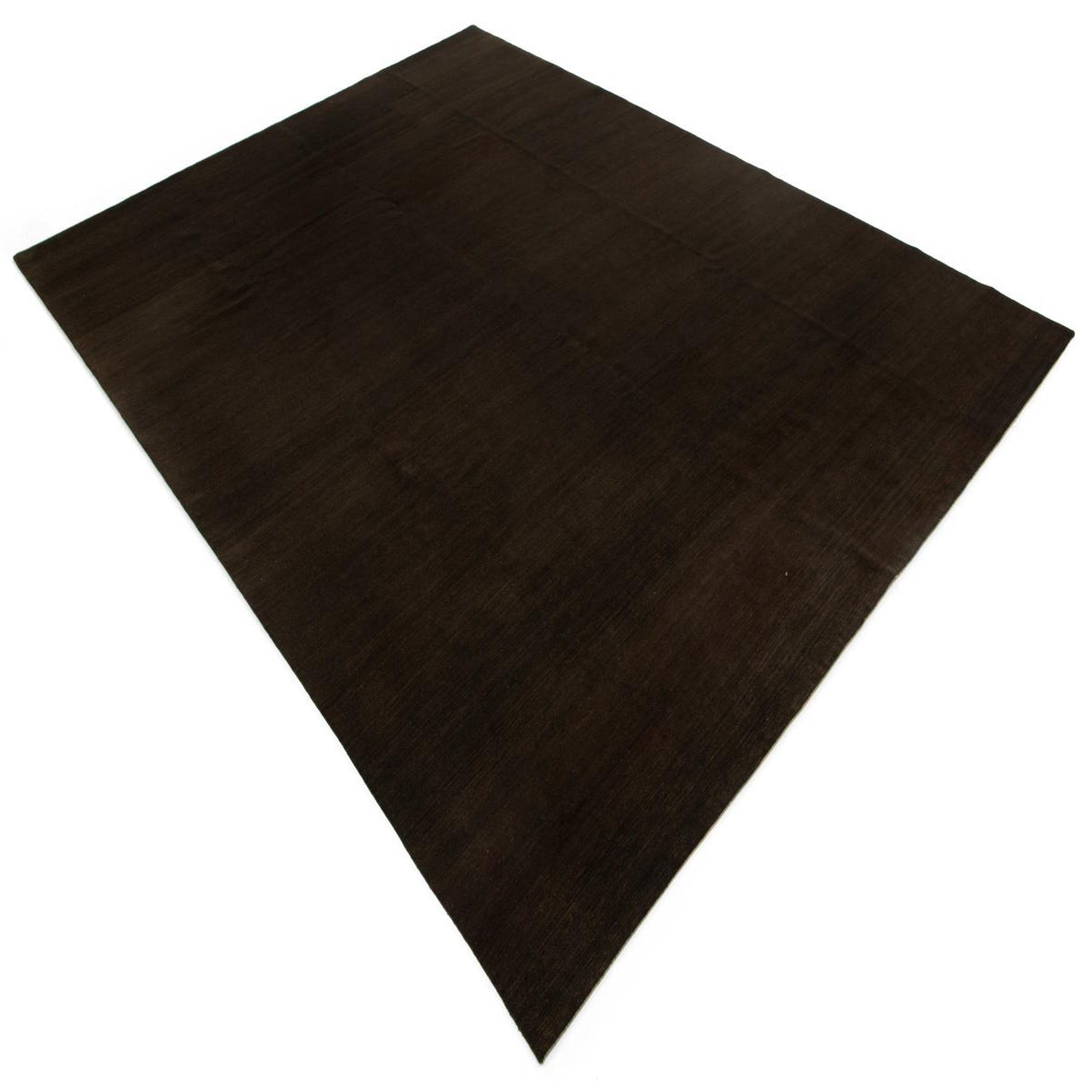 A 9x12 rectangular Odegard Collection Persian rug in deep brown wool, featuring subtle variations in tone.
