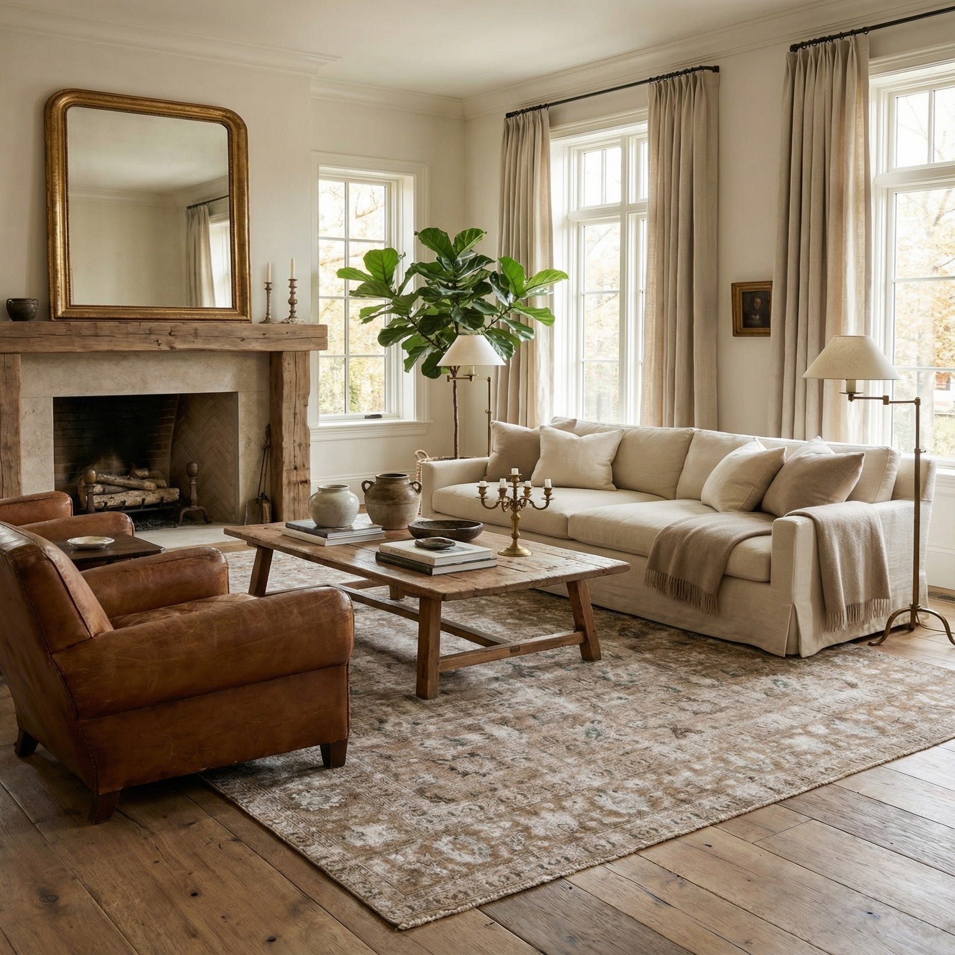 Perfect for grounding a living room, dining space, or an ample foyer, this rug works well in a variety of interior scenarios. It's particularly well-suited for spaces that aim to blend classic and modern elements or for those who wish to add a sense of historical depth without overwhelming a room with color. It teams seamlessly with natural wood furnishings, leather accents, and a palette that emphasizes neutral tones and earthy hues.