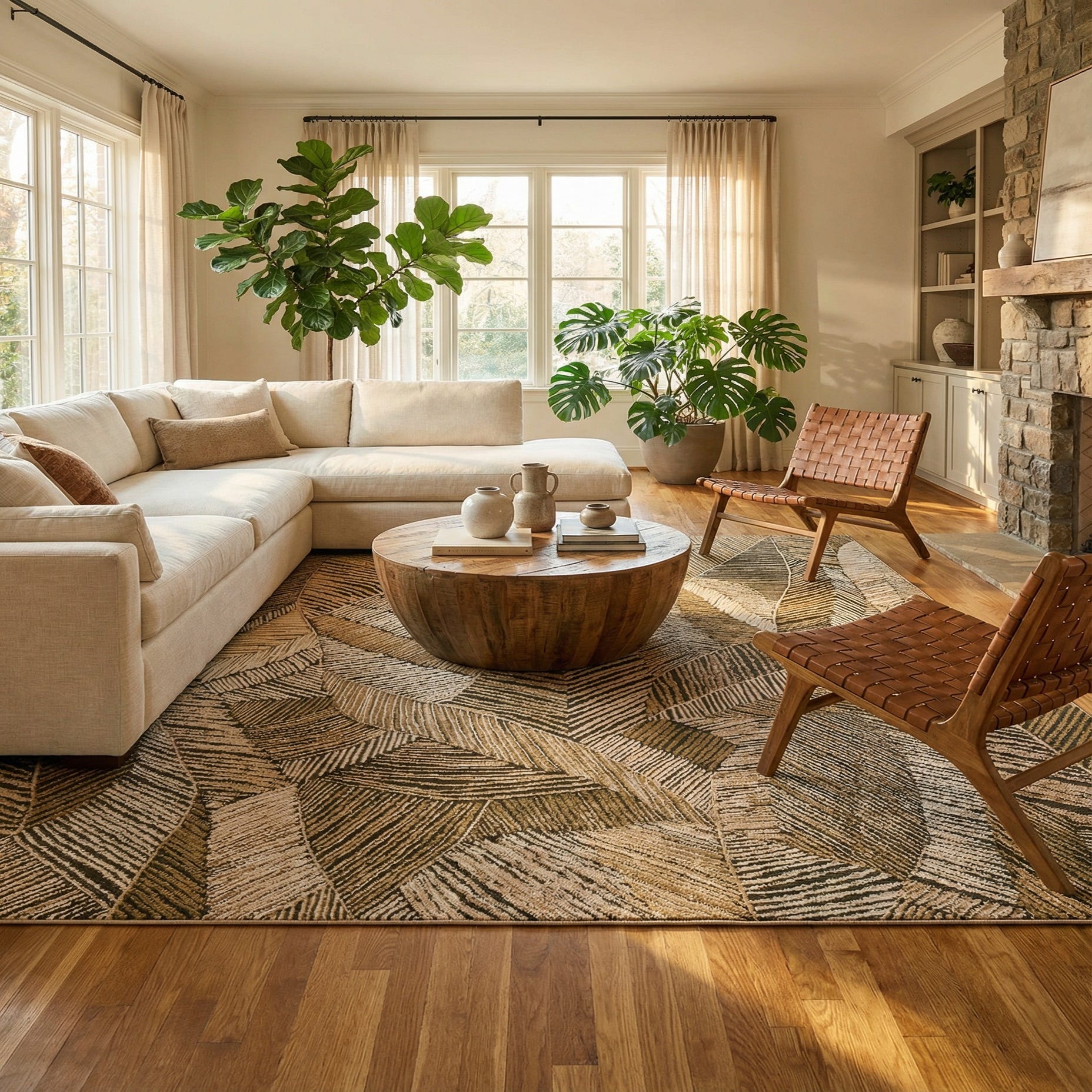 10' x 10' Washable Botanical Indoor / Outdoor Square Rug