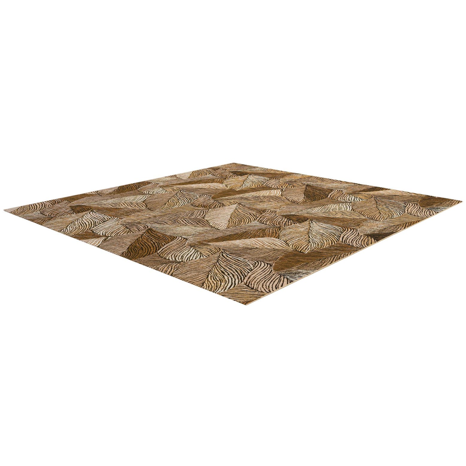 A 10' 0 x 10' 0 square brown modern floral rug with a textured leaf pattern, suitable for indoor or outdoor use.