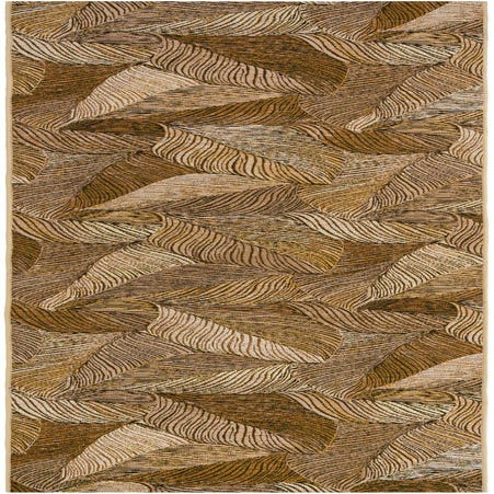 A 12 ft runner rug featuring a modern botanical leaf pattern in varying shades of brown and tan, suitable for a hallway or patio.