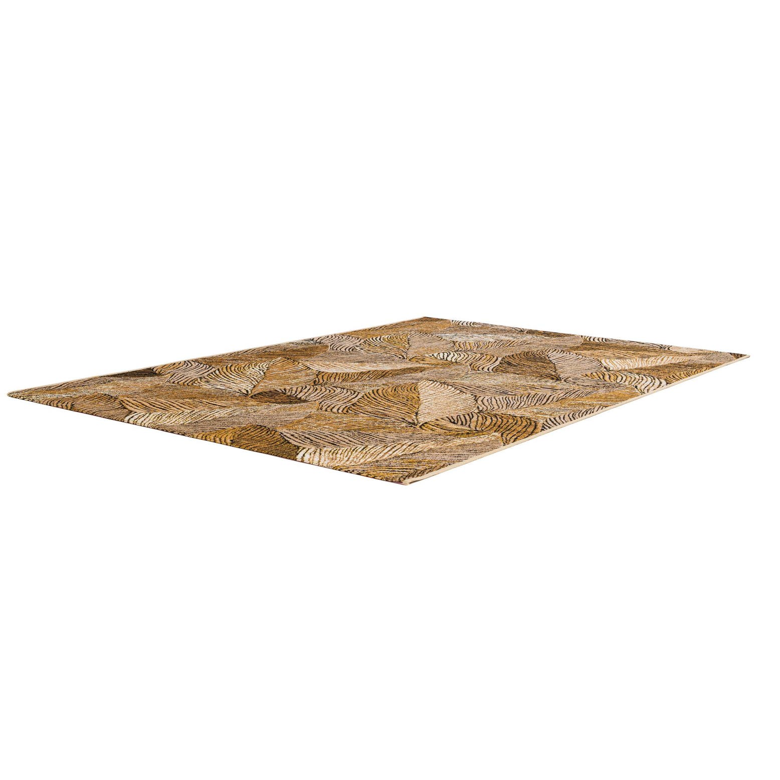 A 4x6 rectangular indoor/outdoor rug featuring a modern floral pattern with overlapping brown and tan leaves.
