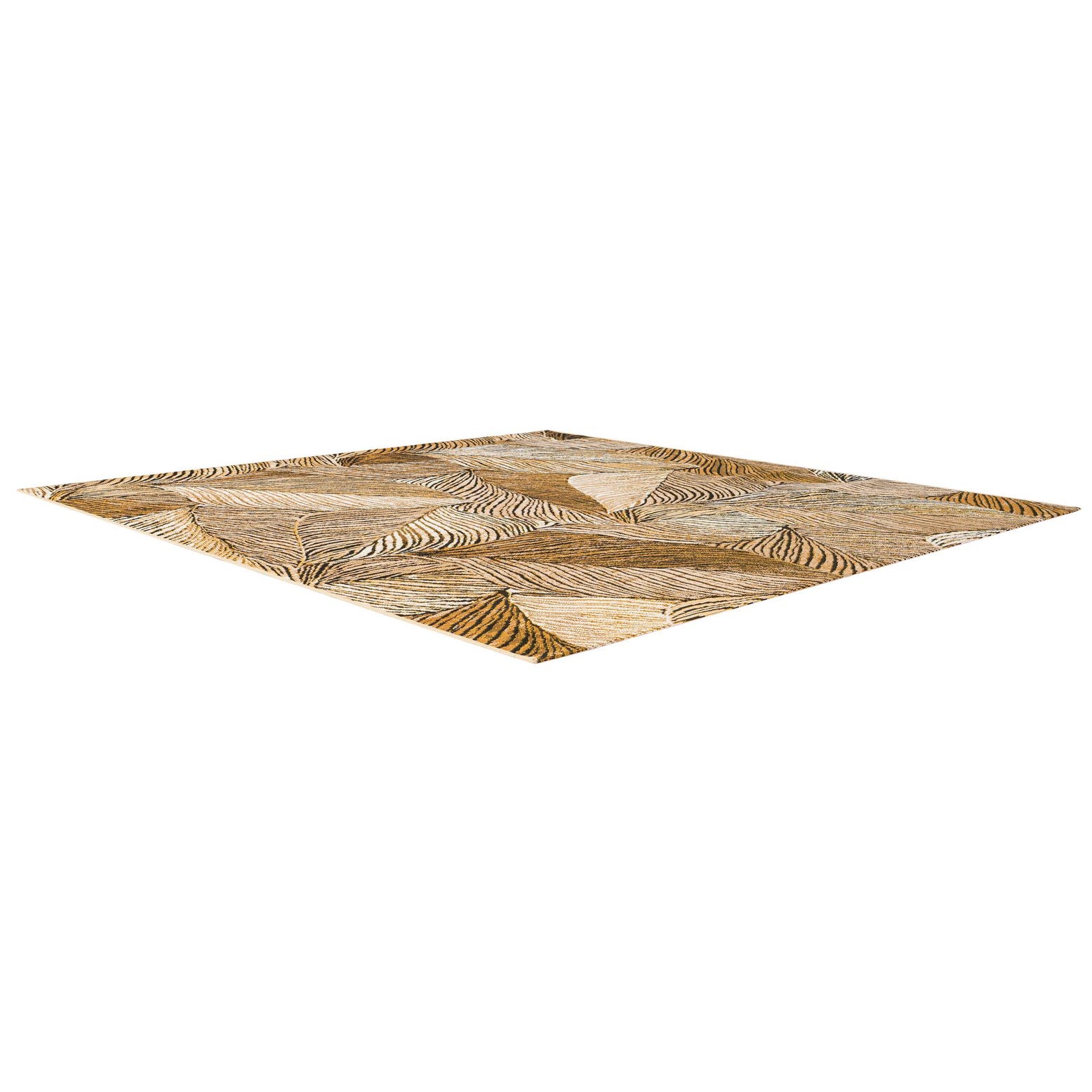 A 6'x6' square indoor/outdoor rug featuring a modern floral pattern of overlapping brown and tan leaves with dark vein details.