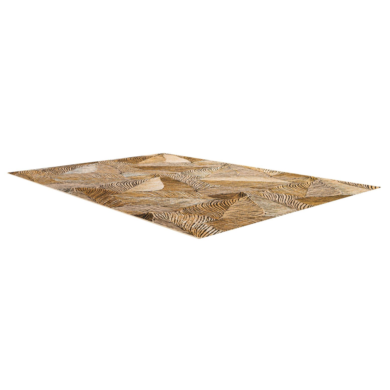 A 6x9 rectangular rug featuring a modern floral pattern with overlapping leaves in various shades of brown and tan, suitable for indoor or outdoor use.