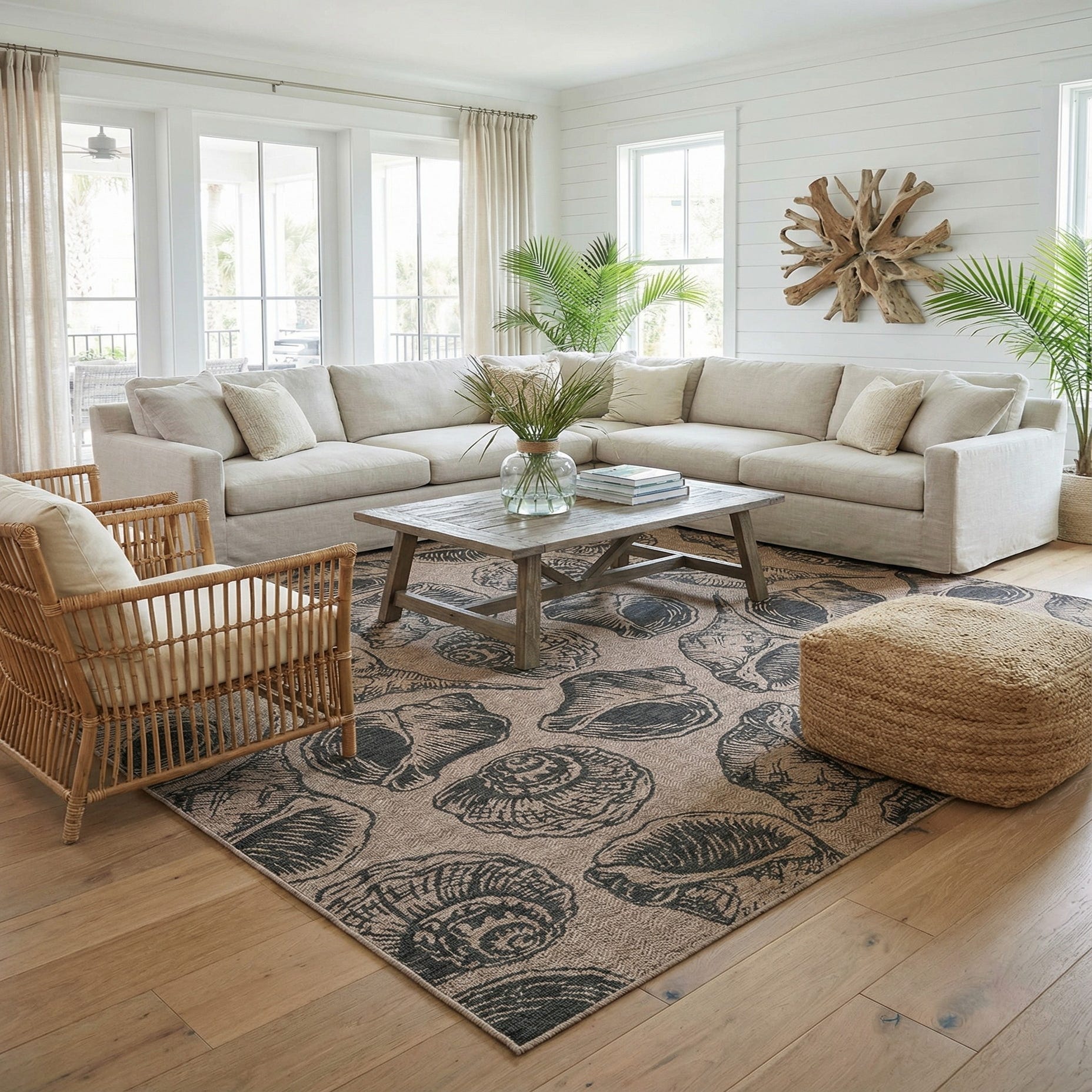 13' x 13' Washable Coastal Indoor / Outdoor Square Rug