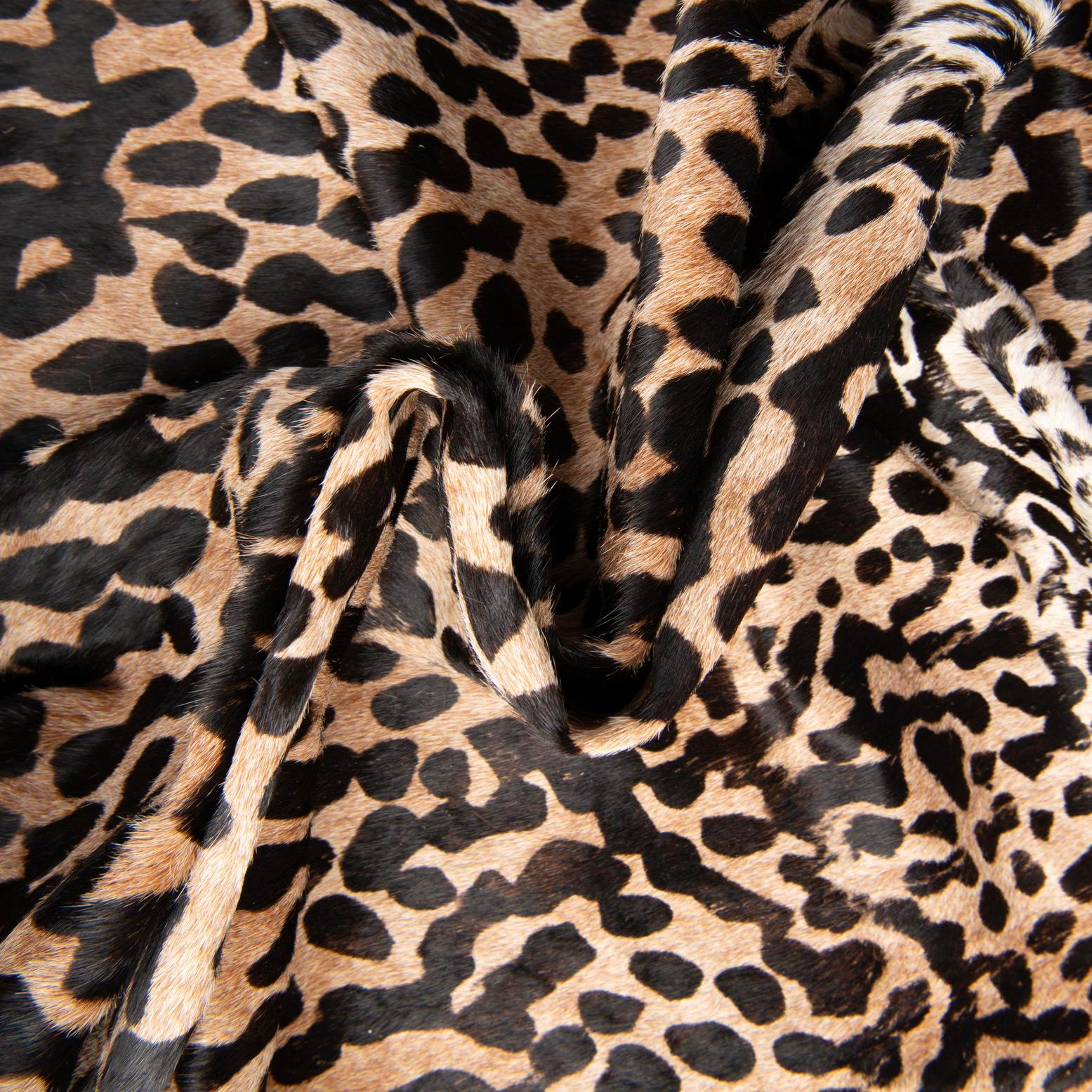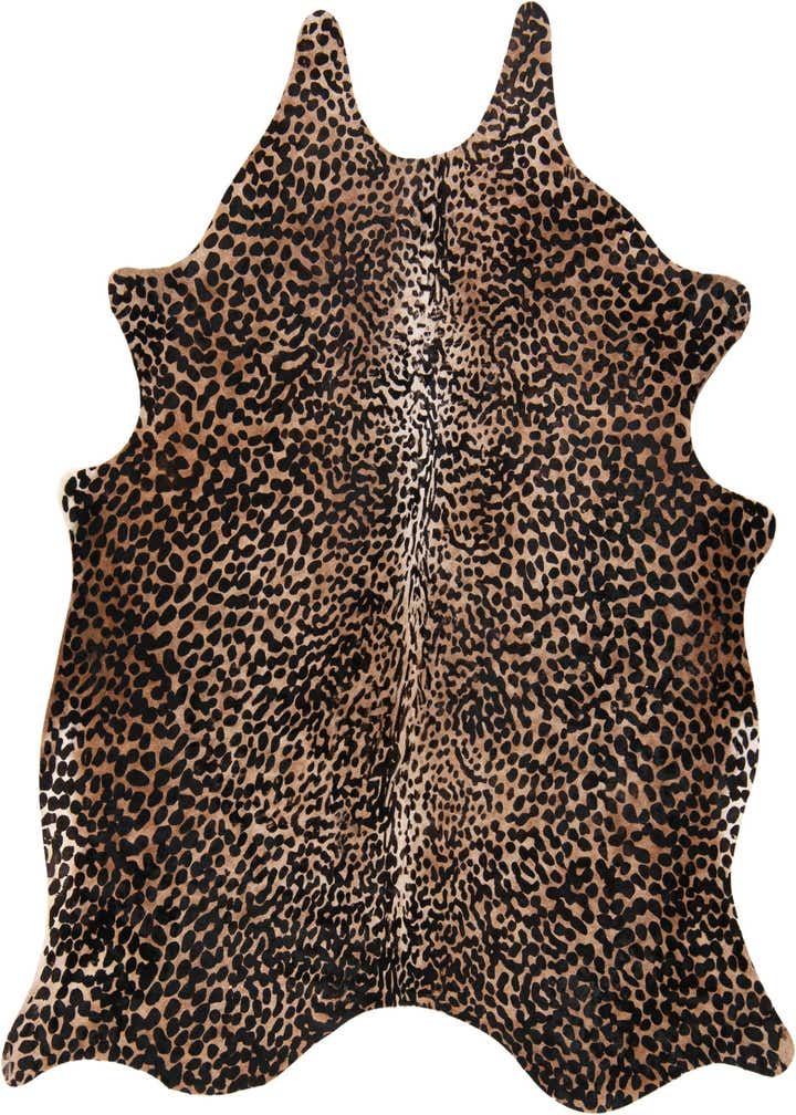 This Cowhide Leather rug presents a dynamic animal print pattern, showcasing a rich melange of brown and black hues. The genuine cowhide construction ensures a unique texture, each piece of hide thoughtfully stitched to create a seamless appearance. The rug's compelling free form 5x7 dimensions contribute to its visual interest, making it a statement piece for a variety of living spaces.