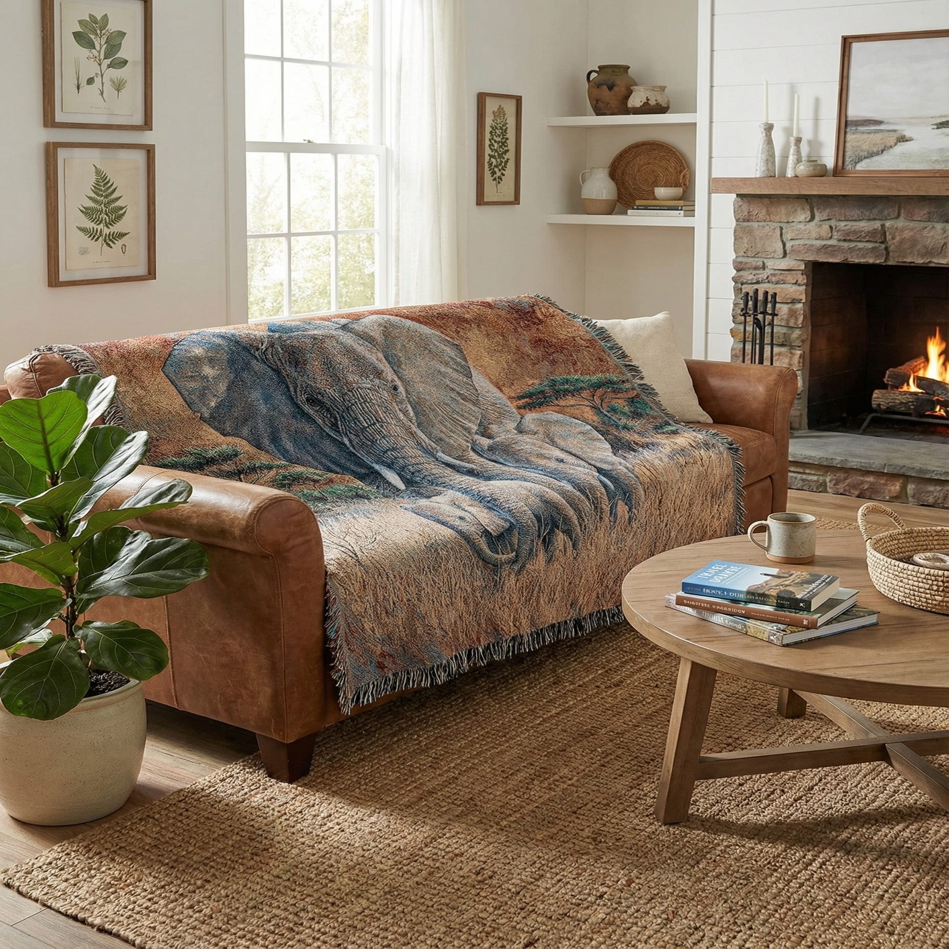 4' 6 x 6' Loving Mother Elephant & Calf Throw Blanket