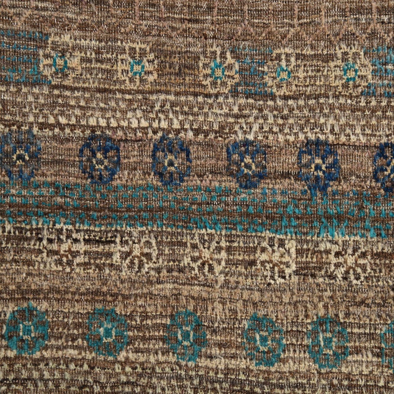 Primary color is Brown Beige. Colors in this rug include: Brown Beige, Black, Blue, Brown, Burgundy, Ivory, Navy Blue.