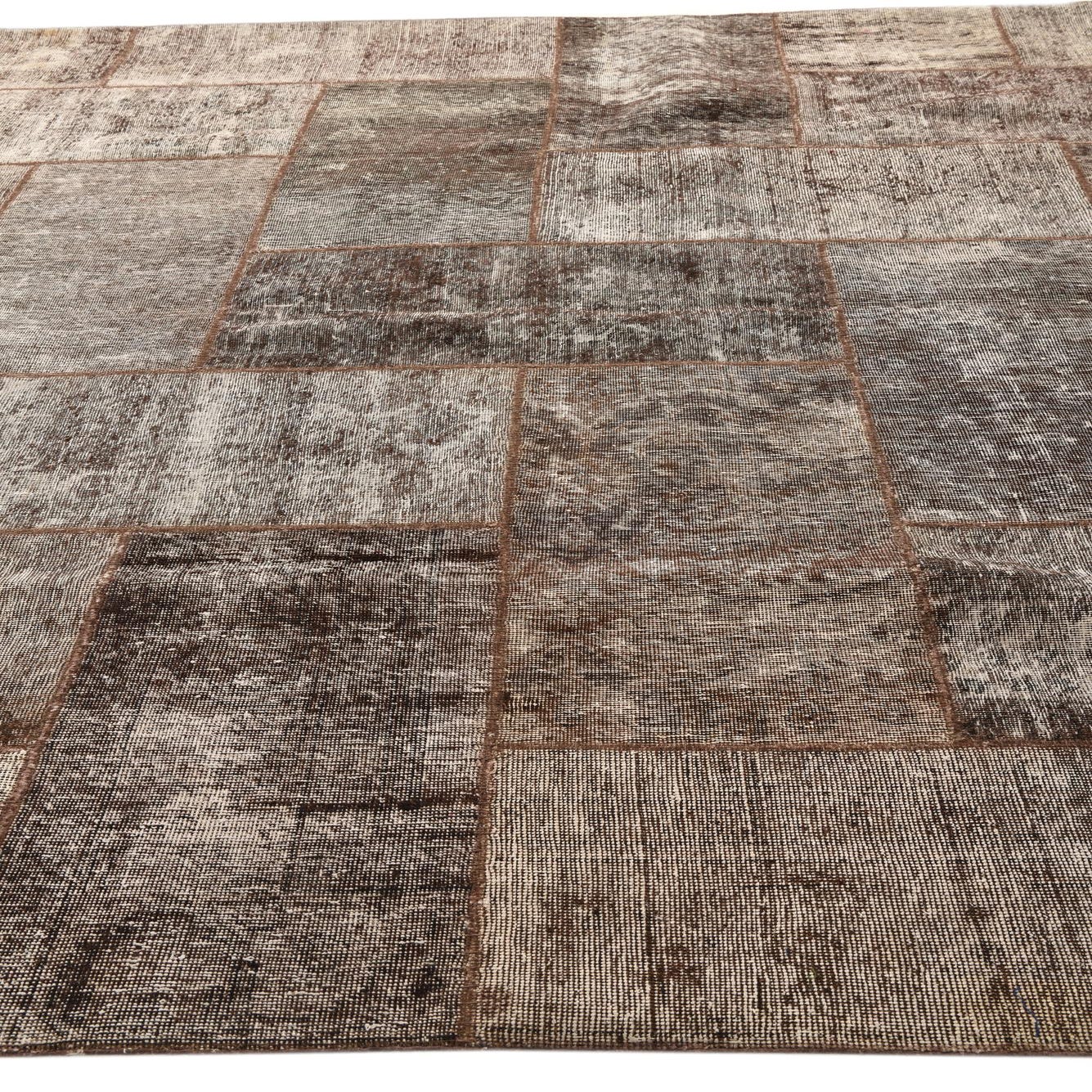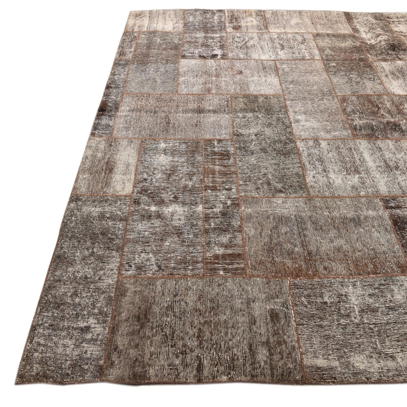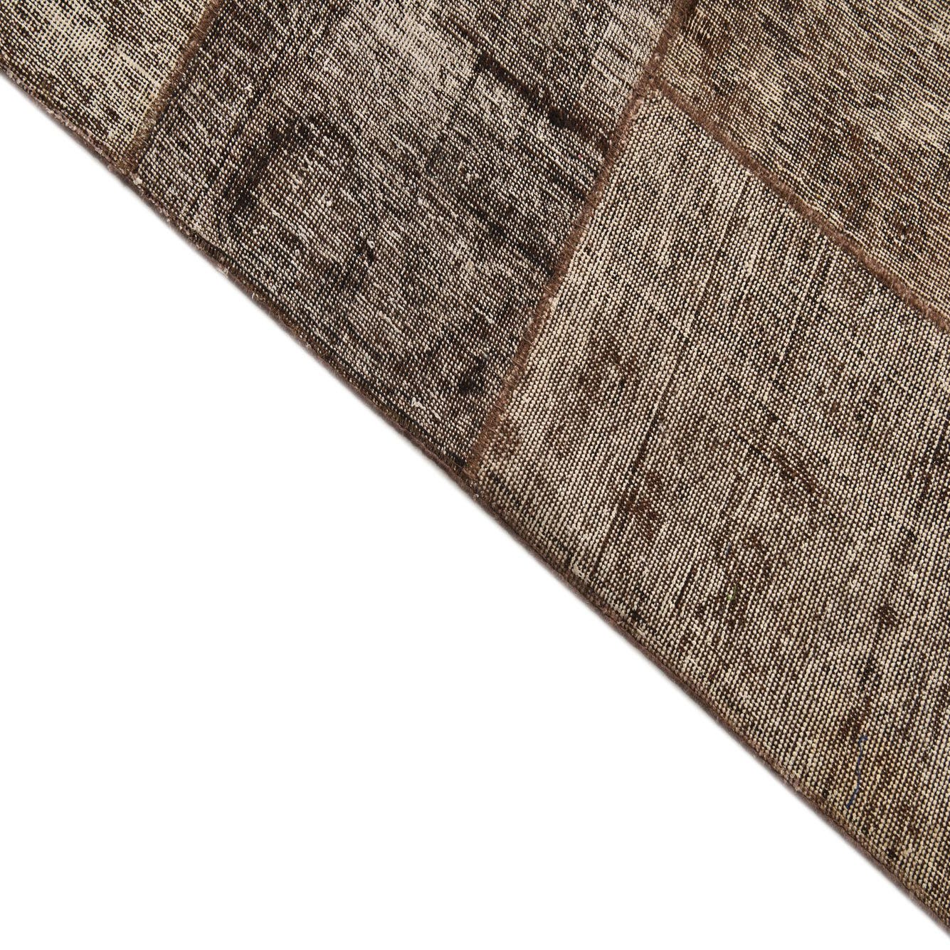 Part of the Ultra Vintage Collection, this 9x12 hand-knotted rug exemplifies sophistication with its 100% wool construction. The rug displays a unique array of brown ivory, beige, and light brown hues, manifesting in an eye-catching patchwork pattern that evokes a sense of timeless charm. Each block within the pattern varies in shade and texture, giving this piece a dynamic and tactile appearance.