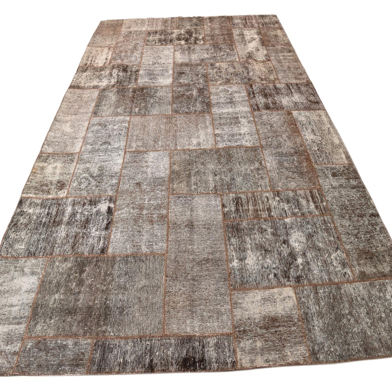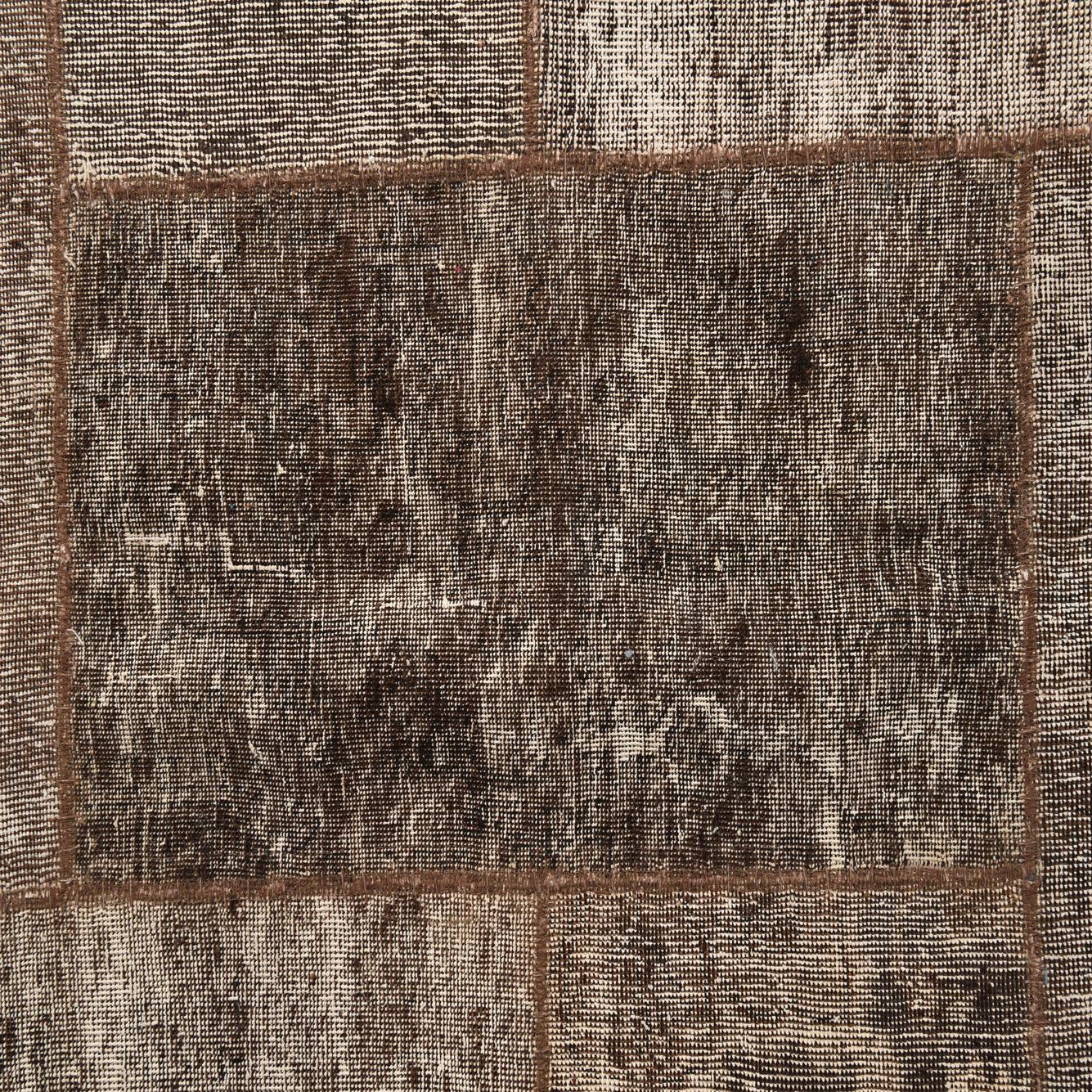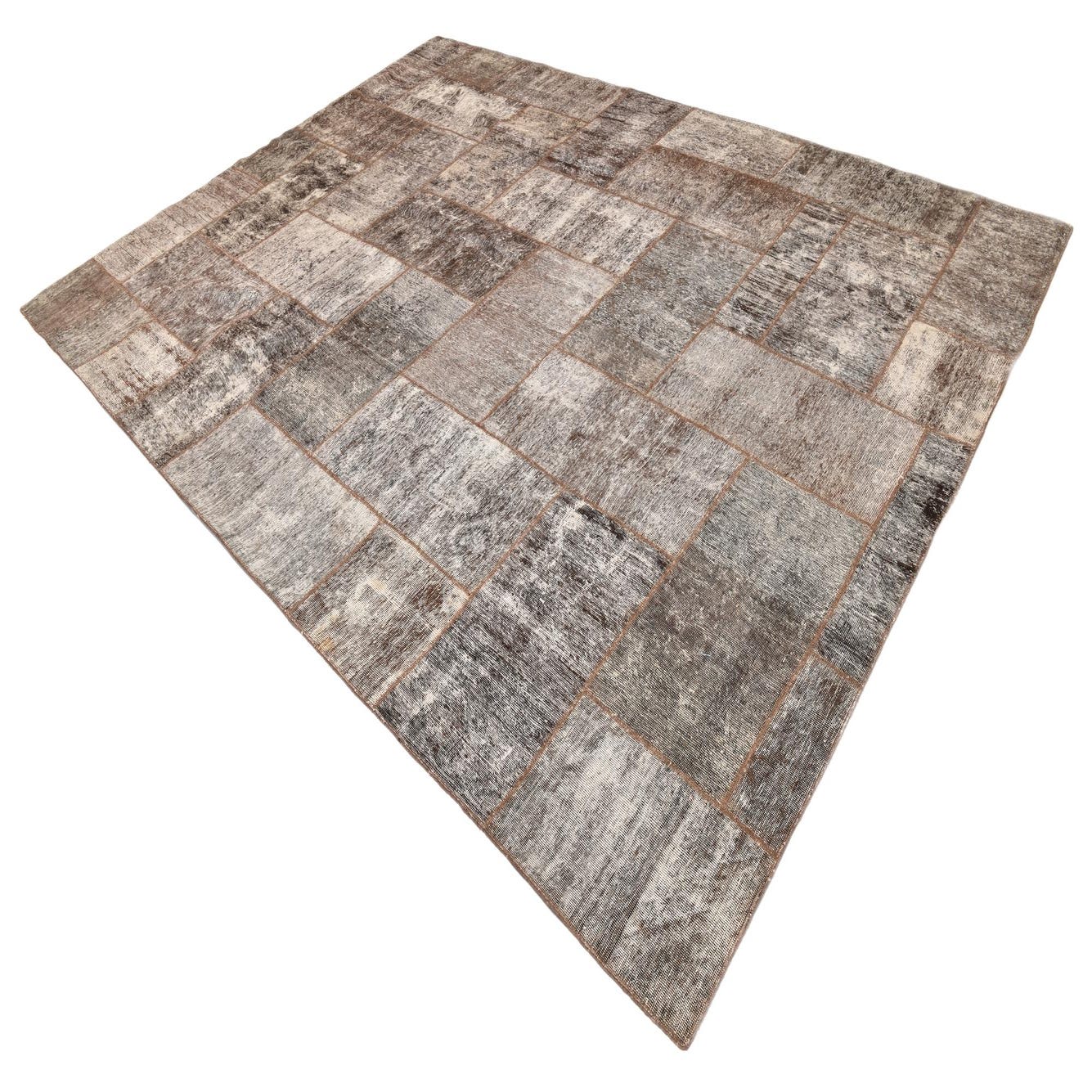 Part of the Ultra Vintage Collection, this 9x12 hand-knotted rug exemplifies sophistication with its 100% wool construction. The rug displays a unique array of brown ivory, beige, and light brown hues, manifesting in an eye-catching patchwork pattern that evokes a sense of timeless charm. Each block within the pattern varies in shade and texture, giving this piece a dynamic and tactile appearance.
