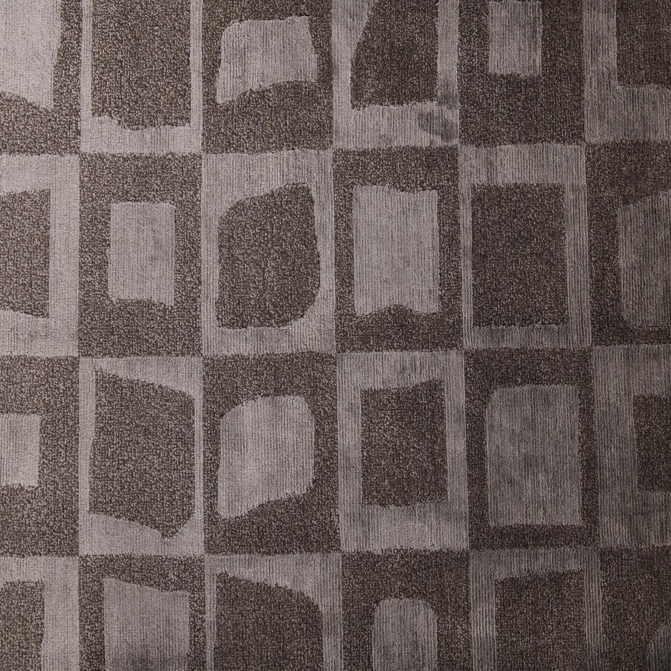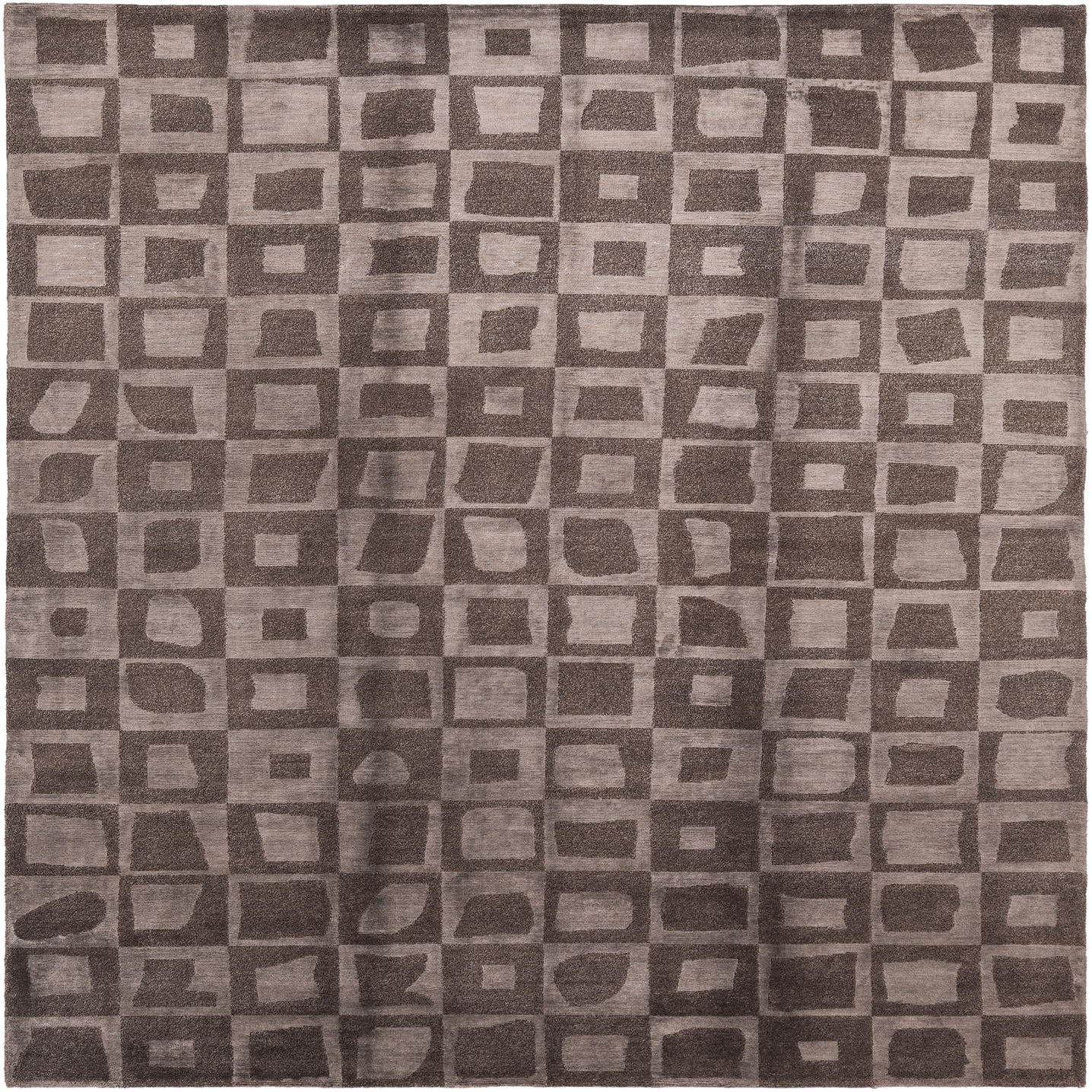 A 5x8 rectangular Darya rug with a modern, abstract checkerboard pattern in varying shades of brown and light brown.