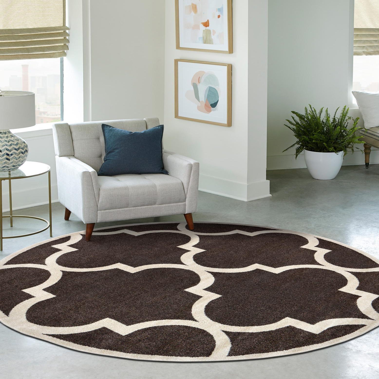 Primary color is Brown. Colors in this rug include: Brown, Beige.