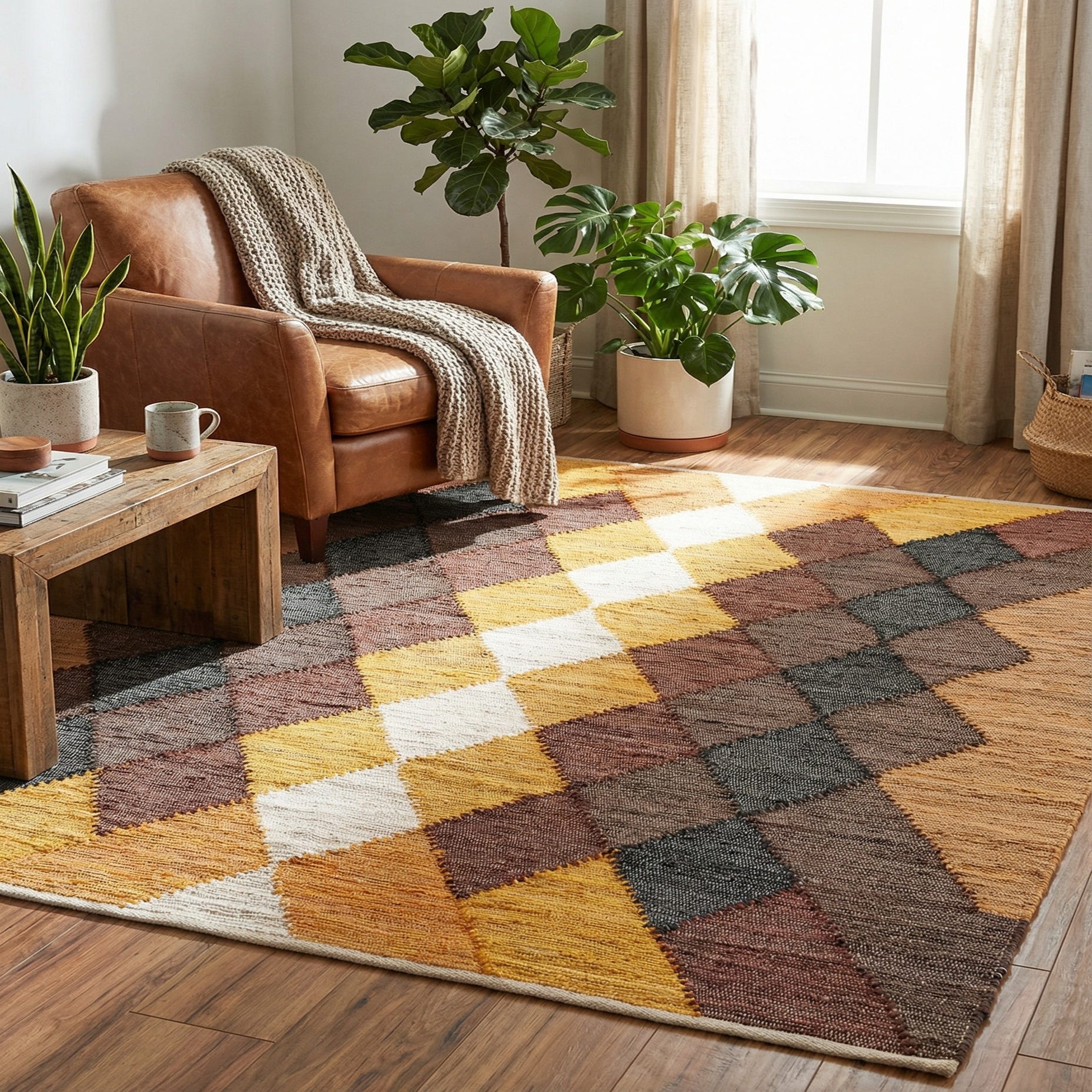 Soft to the touch yet textured in appearance, the rug brings a casual, crafted quality to a room and pairs naturally with warm woods, leather, and woven accents. Use it to define a seating area in a living room, add warmth and pattern to a bedroom, or layer it in a boho or mid-century modern vignette. It also works well under a round dining table or in an entry hall where its graphic pattern can set the tone for the rest of the space.