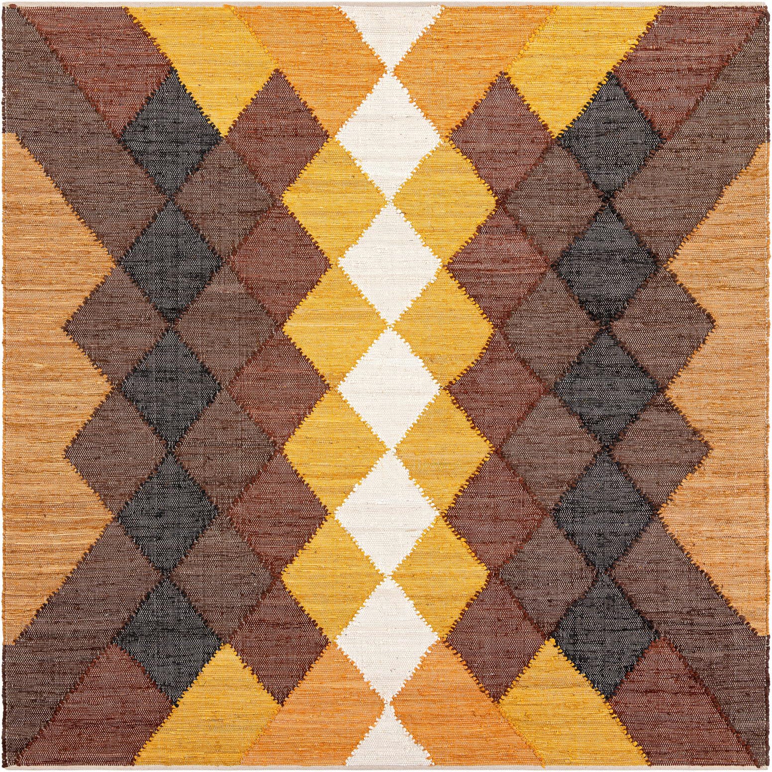 Primary color is Brown Yellow Black. Colors in this rug include: Brown Yellow Black, Ivory.
