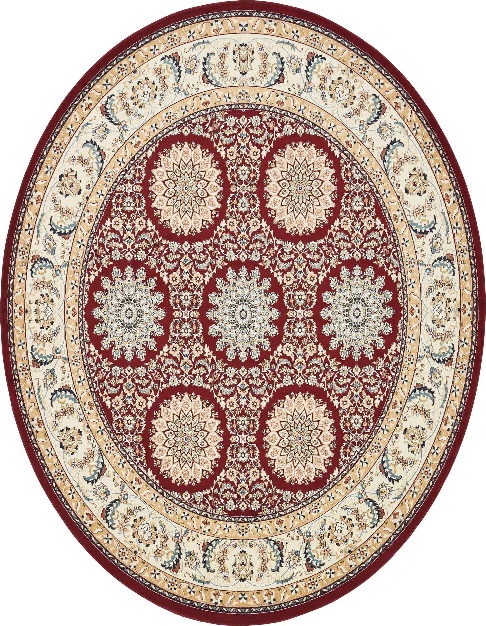 Primary color is Burgundy. Colors in this rug include: Burgundy, Beige, Blue, Cream, Green, Ivory, Navy Blue, Puce.