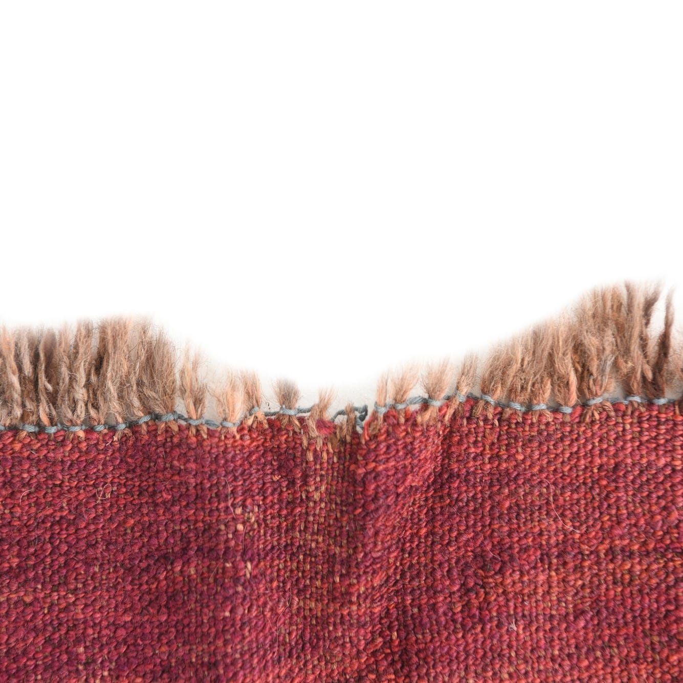 Primary color is Burgundy. Colors in this rug include: Burgundy, Black, Brown, Violet, Orange, Red.
