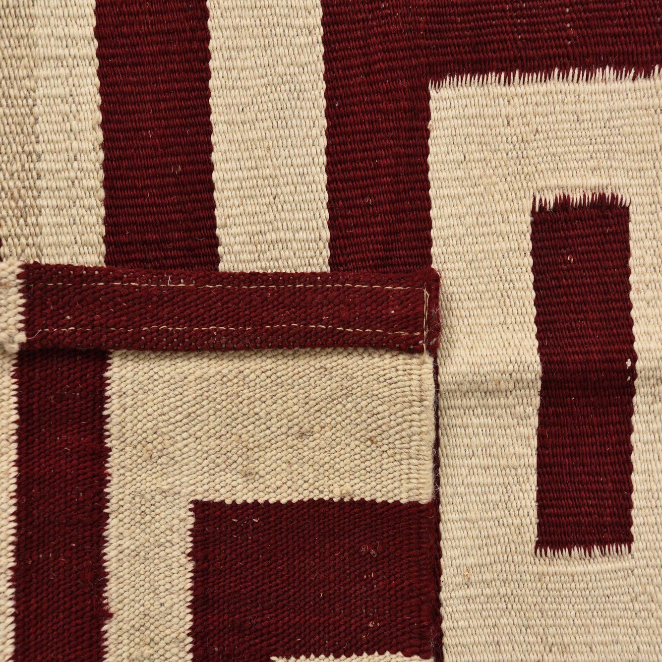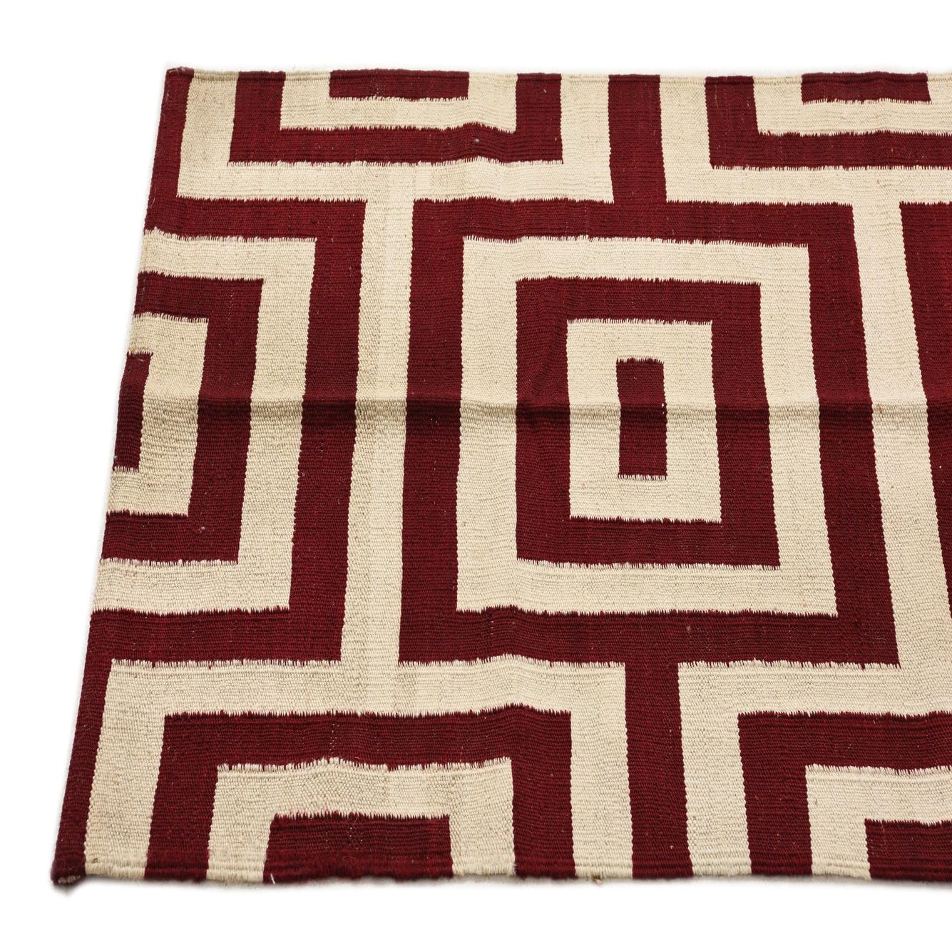Primary color is Burgundy. Colors in this rug include: Burgundy, Ivory.