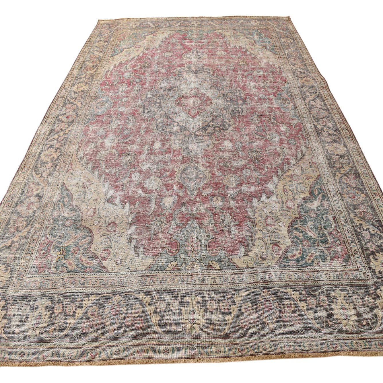 This Persian Ultra Vintage rug is an antique Persian Rug that has been washed, over-dyed, and then shaved down to a low pile. Look at the detail pictures to fully appreciate the uniqueness of this piece.